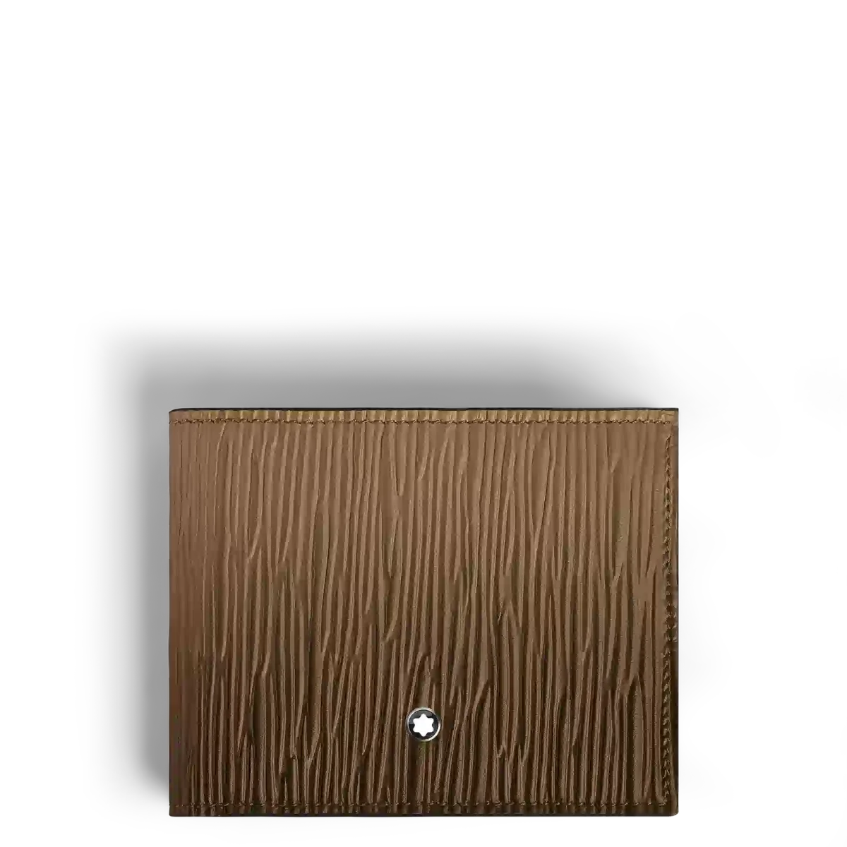 Delgada y elegante, esta clásica cartera doble es una compañera elegante para el uso diario. Confeccionada en piel Corteccia arena con un motivo de corteza de árbol en relieve y efecto sfumato aplicado a mano, combina la artesanía refinada con la practicidad. En el interior, cuenta con seis ranuras para tarjetas de crédito, dos compartimentos para billetes, dos bolsillos adicionales para recibos y el sutil emblema de Montblanc en la parte delantera.N.º de identificación: MB220275. Dimensiones: 90 mm × 10 mm × 110 mm. Peso físico: 70 g. Aviso legal exportable: nuestros artesanos centran los emblemas manualmente, uno por uno. El emblema está colocado en el centro, pero la presión manual con la máquina puede desplazarlo. Se trata de una característica que no compromete la estética del producto y que, según nuestra política, no puede ser motivo de reclamación.