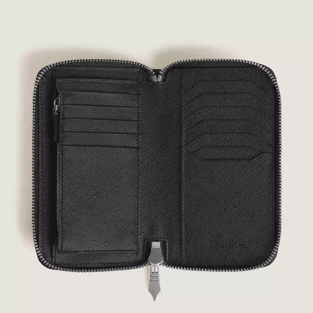 Esta funcional cartera con cremallera combina un estilo atemporal con una funcionalidad práctica. Confeccionada en piel Sartorial repujada en un elegante color fauve, cuenta con un distintivo tirador de metal con forma de plumín, en homenaje a la tradición de Montblanc en el mundo de la escritura. En el interior, la cartera ofrece 12 ranuras para tarjetas de crédito, un monedero con cremallera y tres bolsillos adicionales para recibos u otros objetos esenciales.