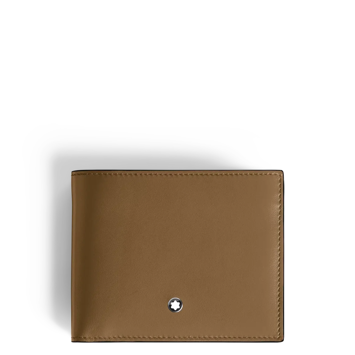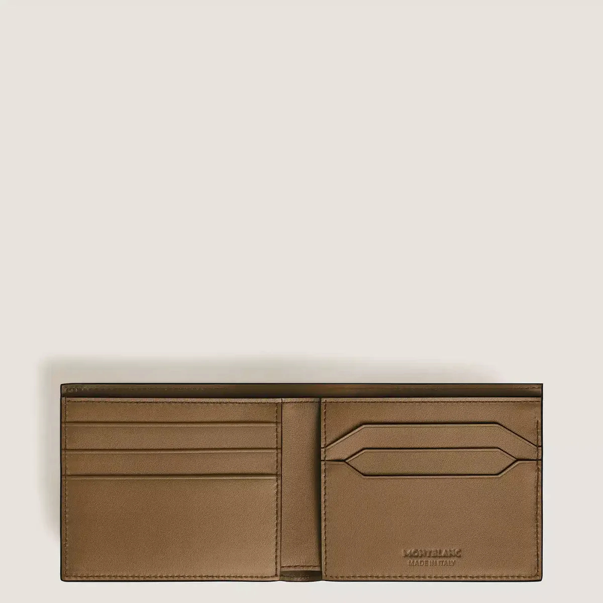 Delgada y elegante, esta clásica cartera plegable es una compañera elegante para el día a día. Diseñada para guardar todos tus objetos esenciales, la cartera cuenta con seis ranuras para tarjetas de crédito, dos compartimentos para billetes y dos bolsillos adicionales para recibos. Fabricada en lujosa piel Meisterstück de color arena, está rematada con el sutil emblema de Montblanc en la parte delantera.N.º de identificación: MB220447. Dimensiones: 115 mm × 10 mm × 90 mm. Peso físico: 70 g. Aviso legal exportable: nuestros artesanos centran los emblemas manualmente, uno por uno. El emblema está colocado en el centro, pero la presión manual con la máquina puede desplazarlo. Se trata de una característica que no compromete la estética del producto y que, según nuestra política, no puede ser motivo de reclamación.