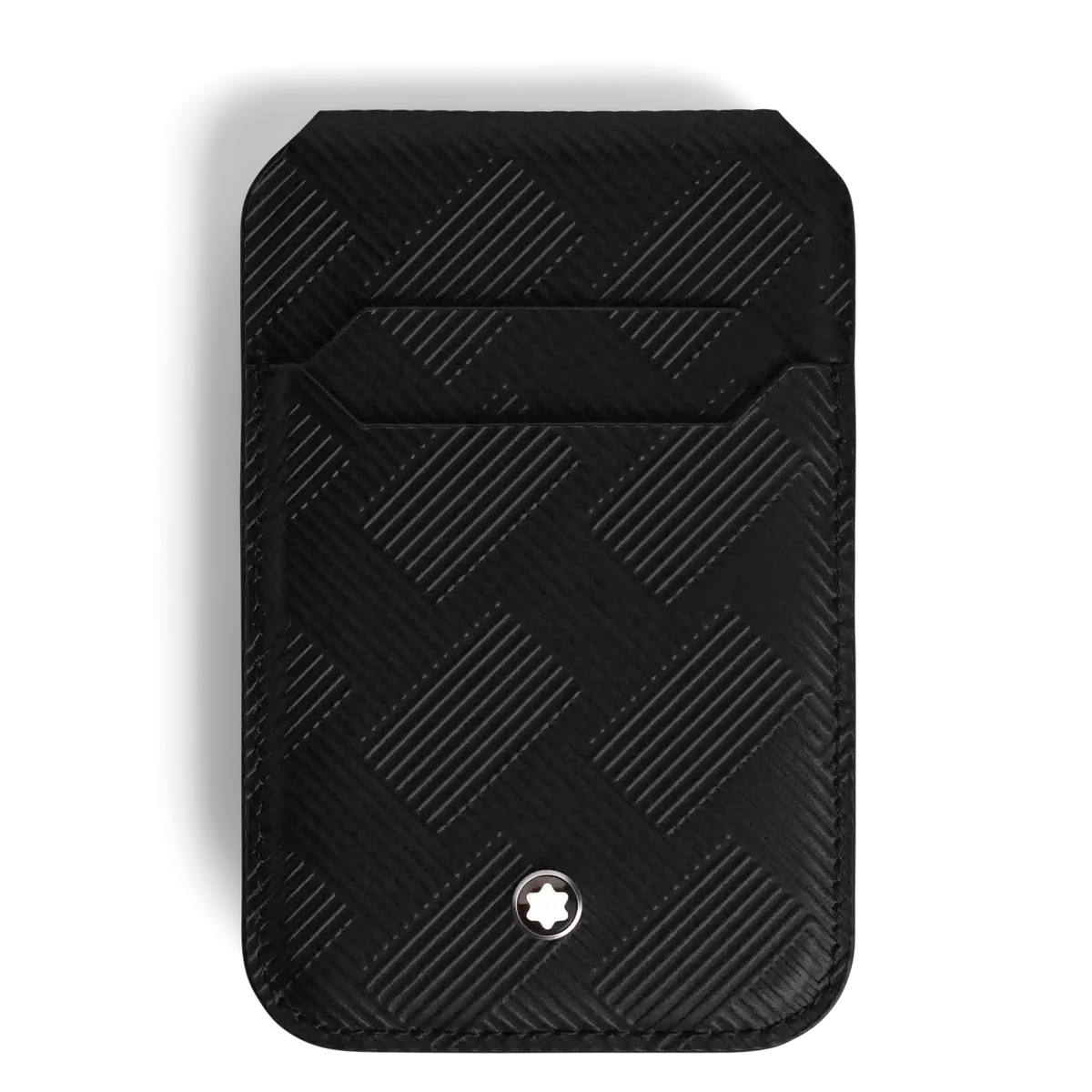 Fabricado en piel negra con el icónico motivo Extreme 3.0 en relieve, este accesorio minimalista con MagSafe® está diseñado para guardar tres tarjetas y se acopla fácilmente a la funda de tu Apple iPhone®. Creado para aquellos que aprecian la comodidad y la sofisticación, este tarjetero mejora la utilidad de tu teléfono y te permite tener tus objetos esenciales a mano. Descubre las fundas Extreme 3.0 para iPhone® de Apple a juego, que se venden por separado.N.º de identificación: MB199549. Dimensiones: 70 mm × 15 mm × 105 mm. Peso físico: 70 g. Aviso legal exportable: nuestros artesanos centran los emblemas manualmente, uno por uno. El emblema está colocado en el centro, pero la presión manual con la máquina puede desplazarlo. Se trata de una característica que no compromete la estética del producto y que, según nuestra política, no puede ser motivo de reclamación.