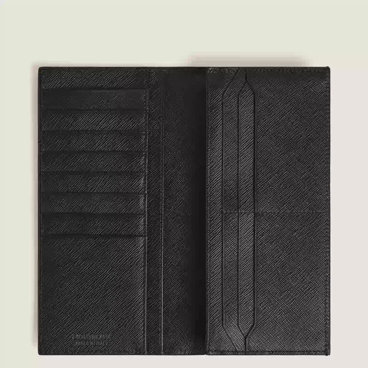 Diseñada pensando tanto en el estilo como en la funcionalidad, esta cartera está confeccionada en piel sartorial con relieve en dos tonos, en una elegante combinación de azul y negro. Cuenta con un espacioso bolsillo con cremallera para guardar monedas u objetos esenciales, además de 14 ranuras específicas para tarjetas de crédito. Además, incluye dos compartimentos para billetes, dos bolsillos adicionales para recibos y se completa con el emblemático emblema de Montblanc. N.º de identificación: MB220388. Dimensiones: 95 mm * 15 mm * 195 mm. Peso físico: 150 g. Aviso legal exportable: 15 mm * 195 mm. 15 mm * 195 mm Peso físico 150 g Aviso legal exportable Los emblemas son centrados manualmente, uno por uno, por nuestros artesanos. El emblema está colocado en el centro, pero la presión manual con la máquina puede desplazarlo. Se trata de una característica que no compromete la estética del producto y que, según nuestra política, no puede ser motivo de reclamación.