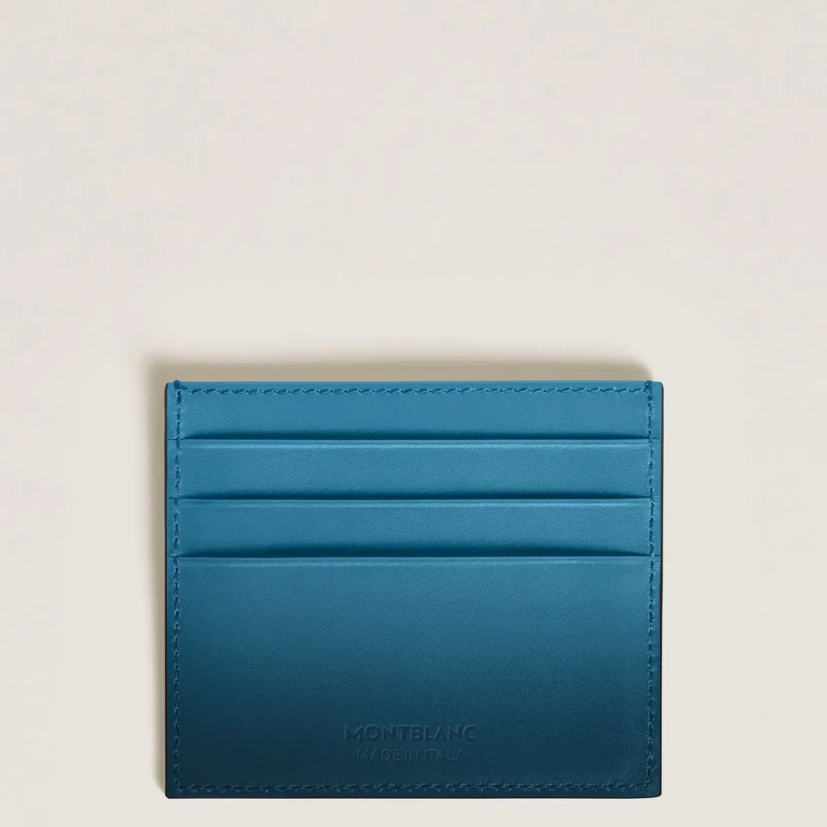 Este tarjetero Meisterstück, ideal para el día a día, tiene una silueta compacta que cabe perfectamente en la mayoría de los bolsillos. Fabricado en piel azul ahumada con un efecto sfumato aplicado manualmente para darle un aspecto elegante, tiene espacio para hasta seis tarjetas de crédito y cuenta con un bolsillo adicional para objetos pequeños.N.º de identificación: MB199268. Dimensiones: 100 mm * 5 mm * 80 mm. Peso físico: 23 g. Aviso legal exportable: los emblemas son centrados manualmente, uno por uno, por nuestros artesanos. El emblema está colocado en el centro, pero la presión manual de la máquina puede desplazarlo. Se trata de una característica que no compromete la estética del producto y que, según nuestra política, no puede ser motivo de reclamación.