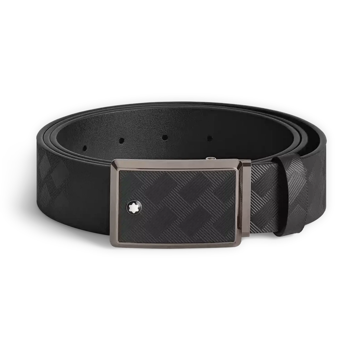 Añade un toque de clase a cualquier atuendo. La correa de 3,5 x 120 cm en piel negra con el icónico estampado Extreme 3.0 se complementa con un cierre de placa con acabado de rutenio brillante e incrustaciones de piel a juego.MB199106