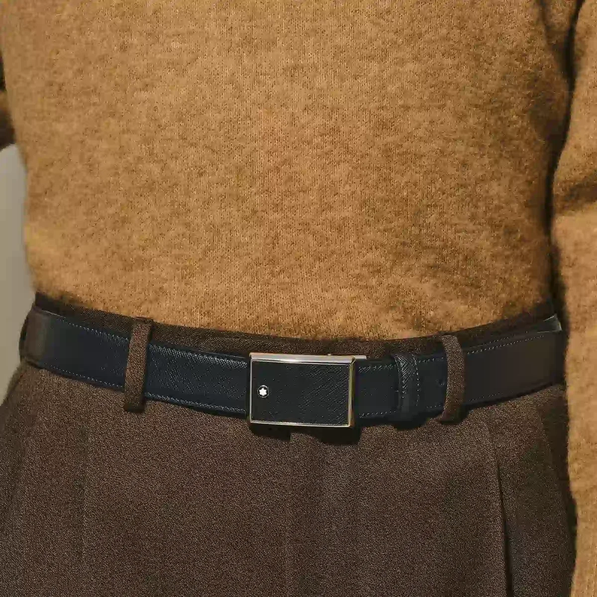 Descubra todos los detalles del cinturón de piel negro de 30 mm. Compre en línea en la tienda oficial de Montblanc.