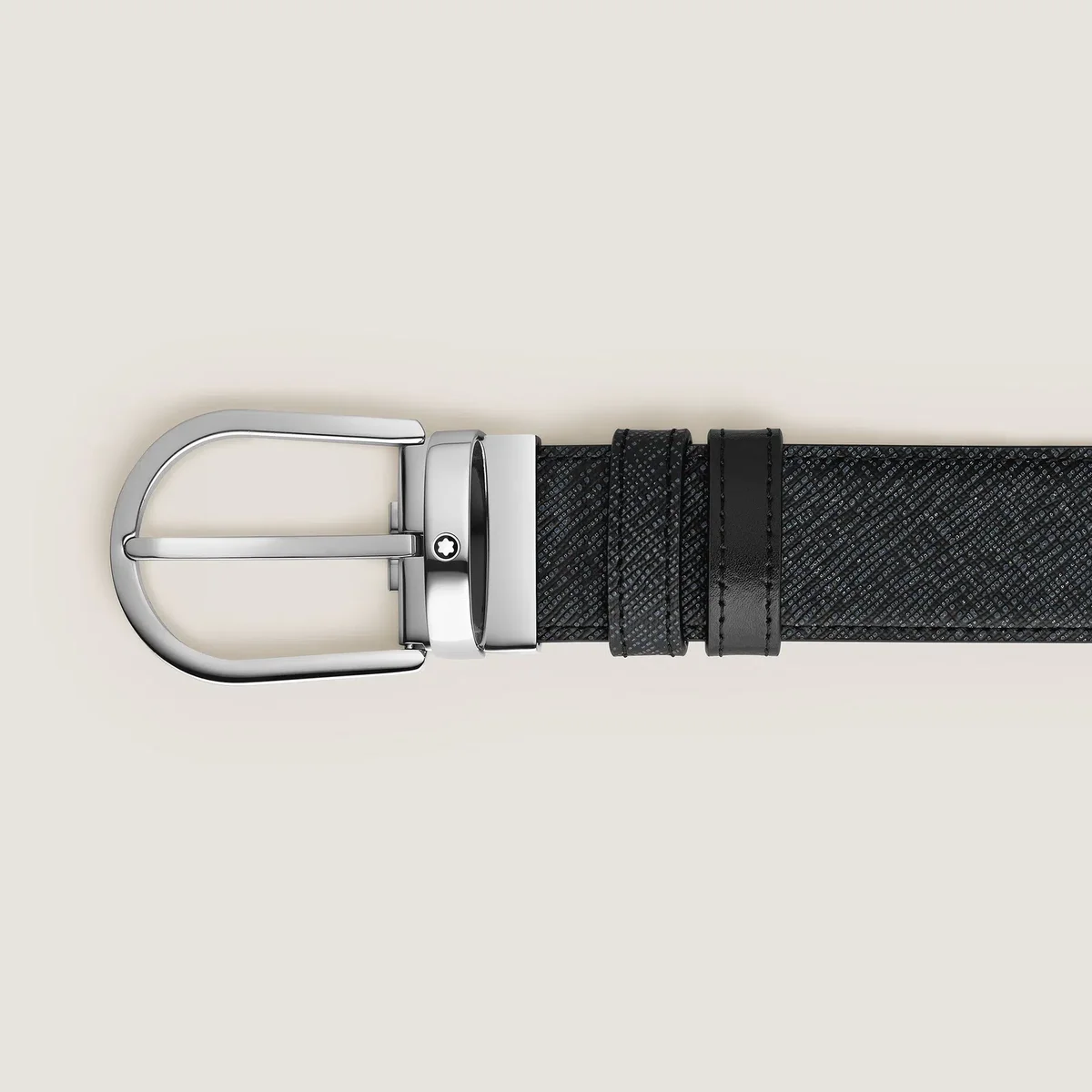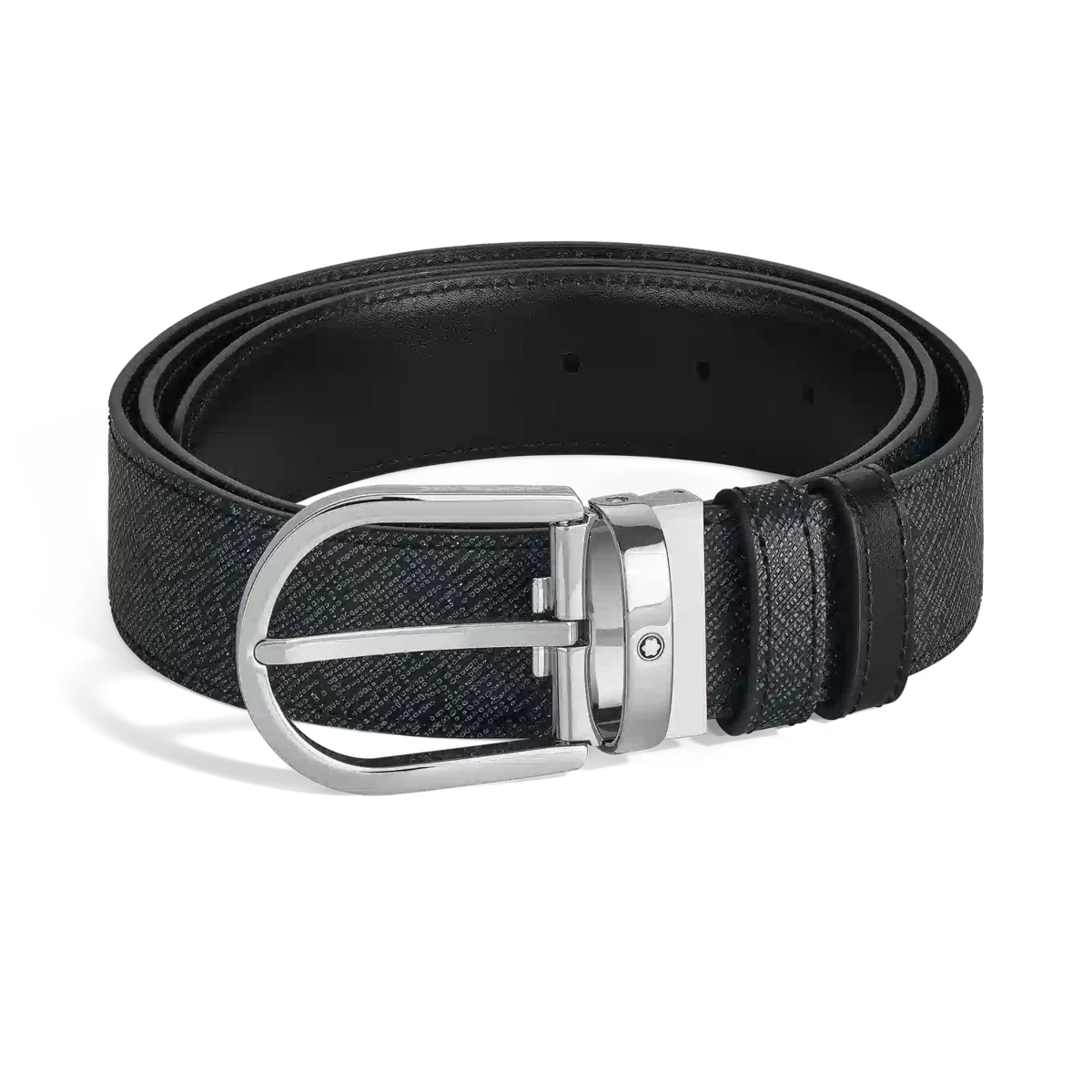 Este cinturón reversible combina elegancia y versatilidad, ofreciendo dos estilos distintos en un solo accesorio. Con nuestra distintiva hebilla Montblanc en forma de herradura con acabado en paladio, un lado de la correa de 35 mm está confeccionado en piel azul tweed con estampado saffiano, mientras que el reverso presenta una elegante piel Meisterstück negra que aporta sofisticación clásica.N.º de identificación: MB198572