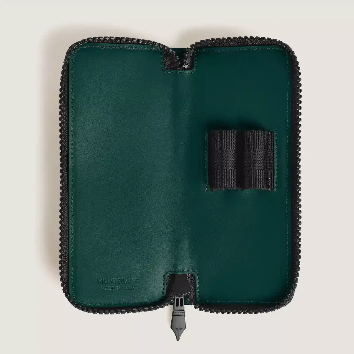 Fabricado en piel plena flor en color verde británico y con el icónico motivo Extreme 3.0 grabado, este estuche para bolígrafos ofrece una forma elegante de transportar o guardar de forma segura sus instrumentos de escritura favoritos. Diseñado para guardar dos bolígrafos del tamaño del Meisterstück Classique o Le Grand, cuenta con un cierre de cremallera seguro, un tirador de cremallera con forma de plumín y está rematado con el emblema de Montblanc para darle un toque refinado.N.º de identificación: MB220254. Dimensiones: 70 mm × 20 mm × 160 mm. Peso físico: 70 g. Aviso legal sobre exportación: nuestros artesanos centran los emblemas manualmente, uno por uno. El emblema está colocado en el centro, pero la presión manual con la máquina puede desplazarlo. Se trata de una característica que no compromete la estética del producto y que, según nuestra política, no puede ser objeto de reclamación.