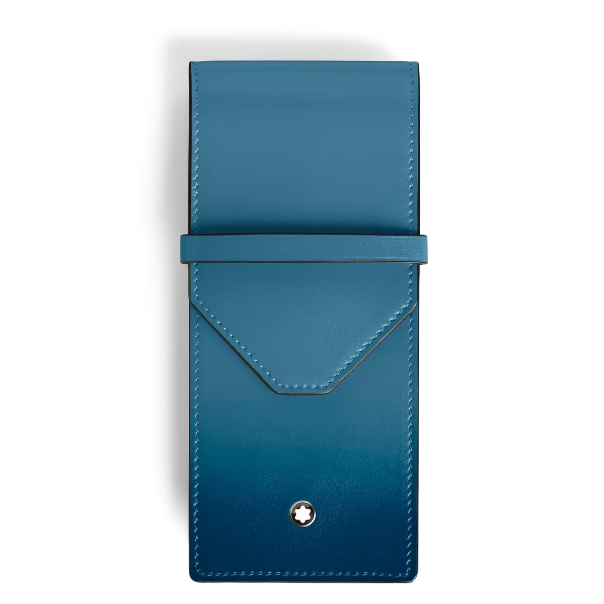 Elegante pero espacioso, este estuche para bolígrafos en azul ahumado está fabricado en piel de gran brillo con un efecto sfumato aplicado a mano. Diseñado para albergar tres instrumentos de escritura del tamaño de un Meisterstück Classique o LeGrand, garantiza que sus bolígrafos favoritos se guarden con estilo y seguridad.N.º de identificación: MB199264. Dimensiones: 70 mm × 18 mm × 160 mm. Peso físico: 50 g. Aviso legal sobre exportación: nuestros artesanos centran los emblemas manualmente, uno por uno. El emblema está colocado en el centro, pero la presión manual con la máquina puede desplazarlo. Se trata de una característica que no compromete la estética del producto y que, según nuestra política, no puede ser objeto de reclamación.