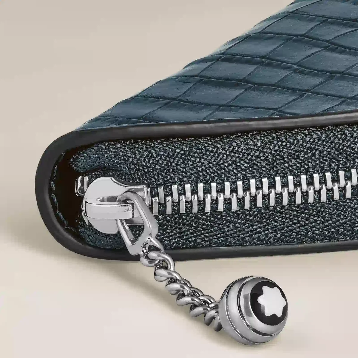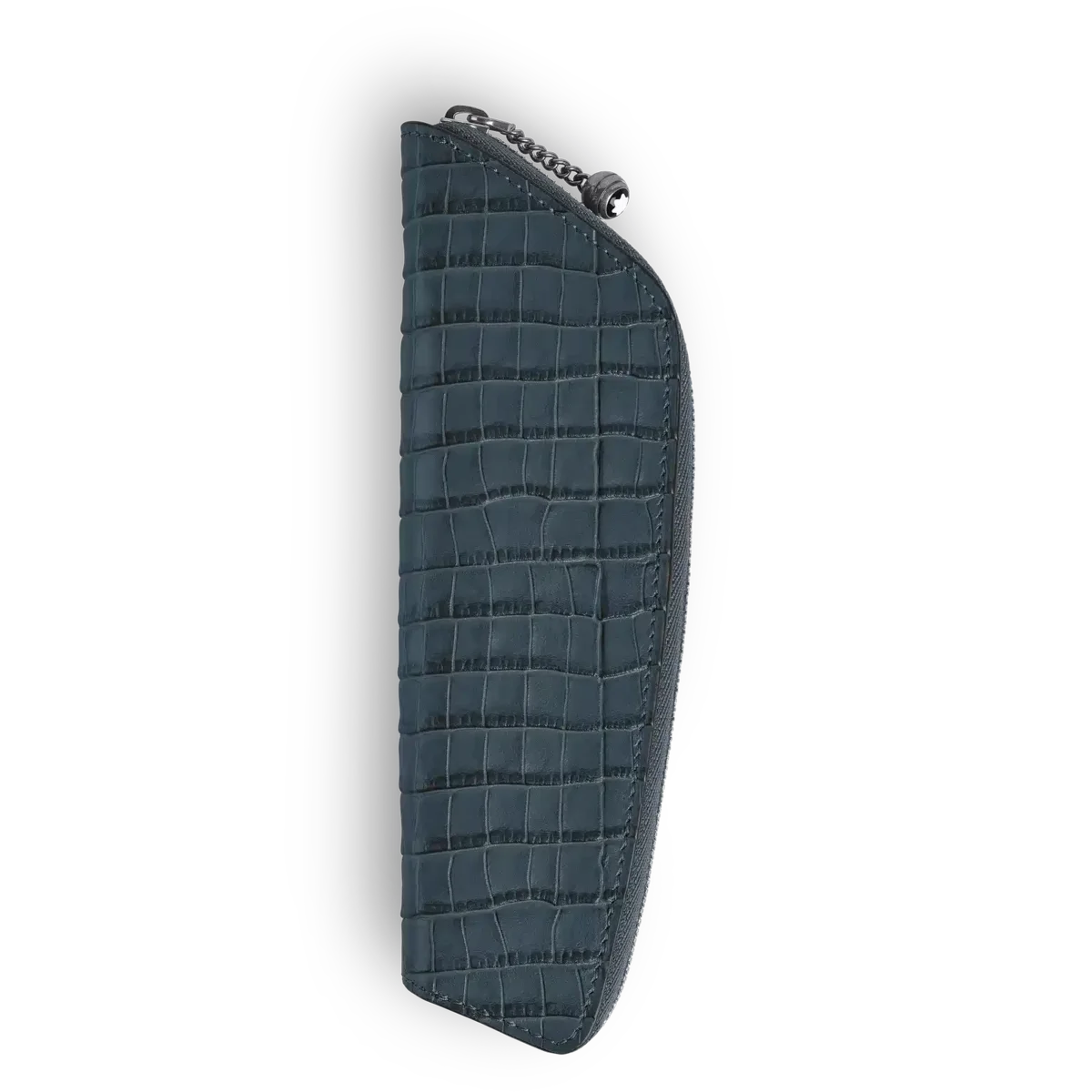 El estuche para bolígrafos rinde homenaje al legado de Montblanc con un toque moderno. Confeccionada en piel azul aterciopelada con relieve de cocodrilo, cuenta con el característico tirador de cadena con emblema esférico, inspirado en una funda para bolígrafos de archivo de Montblanc, una de las primeras creaciones en piel de la marca. Diseñada para guardar un instrumento de escritura, como el Meisterstück Classique o el LeGrand, esta elegante funda combina un estilo distintivo con la practicidad cotidiana.N.º de identificación: MB220485. Dimensiones: 45 mm * 20 mm * 185 mm. Peso físico: 25 g. Aviso legal exportable: los emblemas son centrados manualmente, uno por uno, por nuestros artesanos. El emblema está colocado en el centro, pero la presión manual de la máquina puede desplazarlo. Se trata de una característica que no compromete la estética del producto y que, según nuestra política, no puede ser motivo de reclamación.