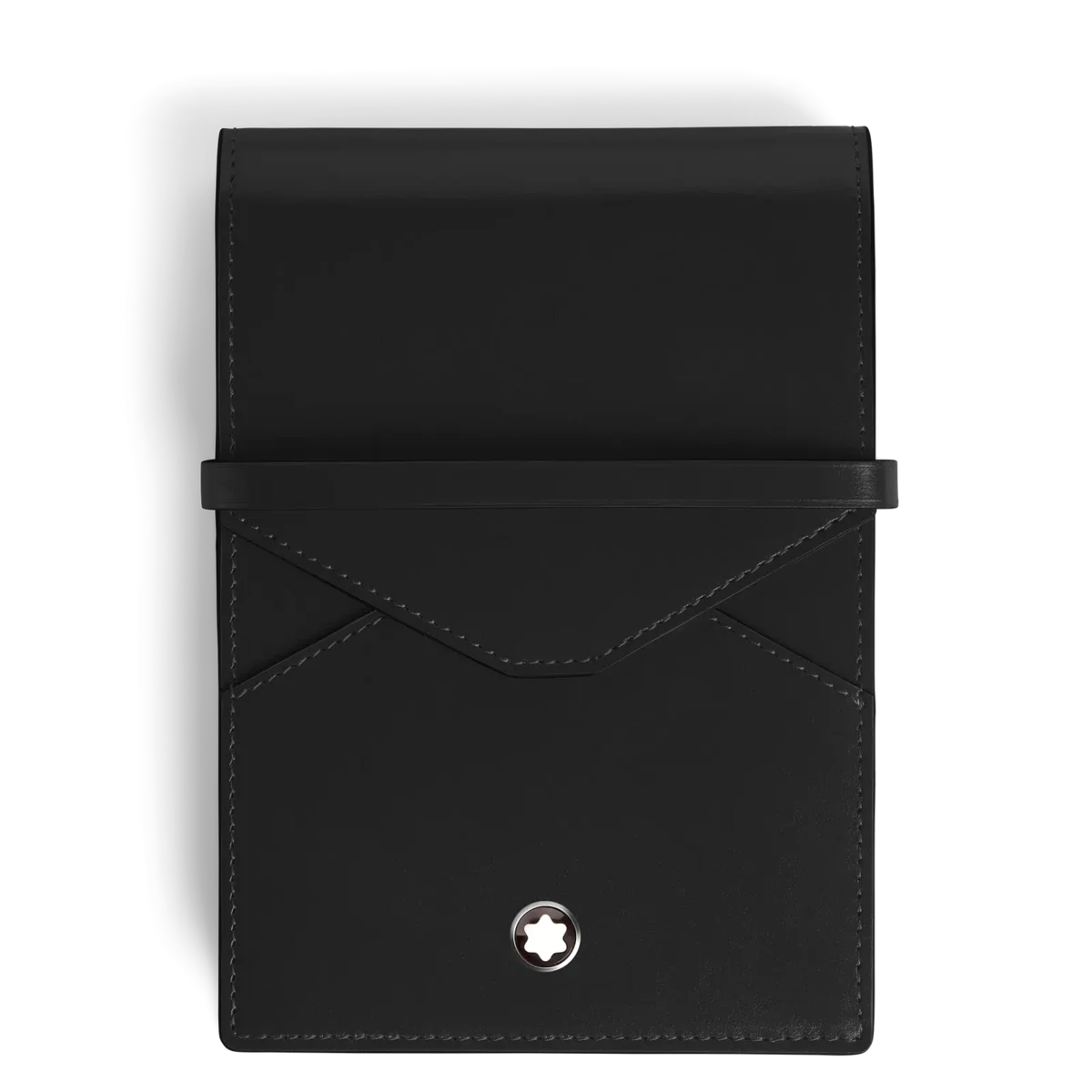 Elegante y espaciosa, esta funda para bolígrafos está confeccionada en lujosa piel negra. Cuenta con un cierre de solapa diseñado para guardar de forma segura hasta cinco instrumentos de escritura del tamaño de un Meisterstück Classique o LeGrand y garantiza que sus instrumentos de escritura favoritos se exhiban con estilo y se guarden de forma segura. N.º de identificación MB199335 Dimensiones 115 mm * 20 mm * 160 mm