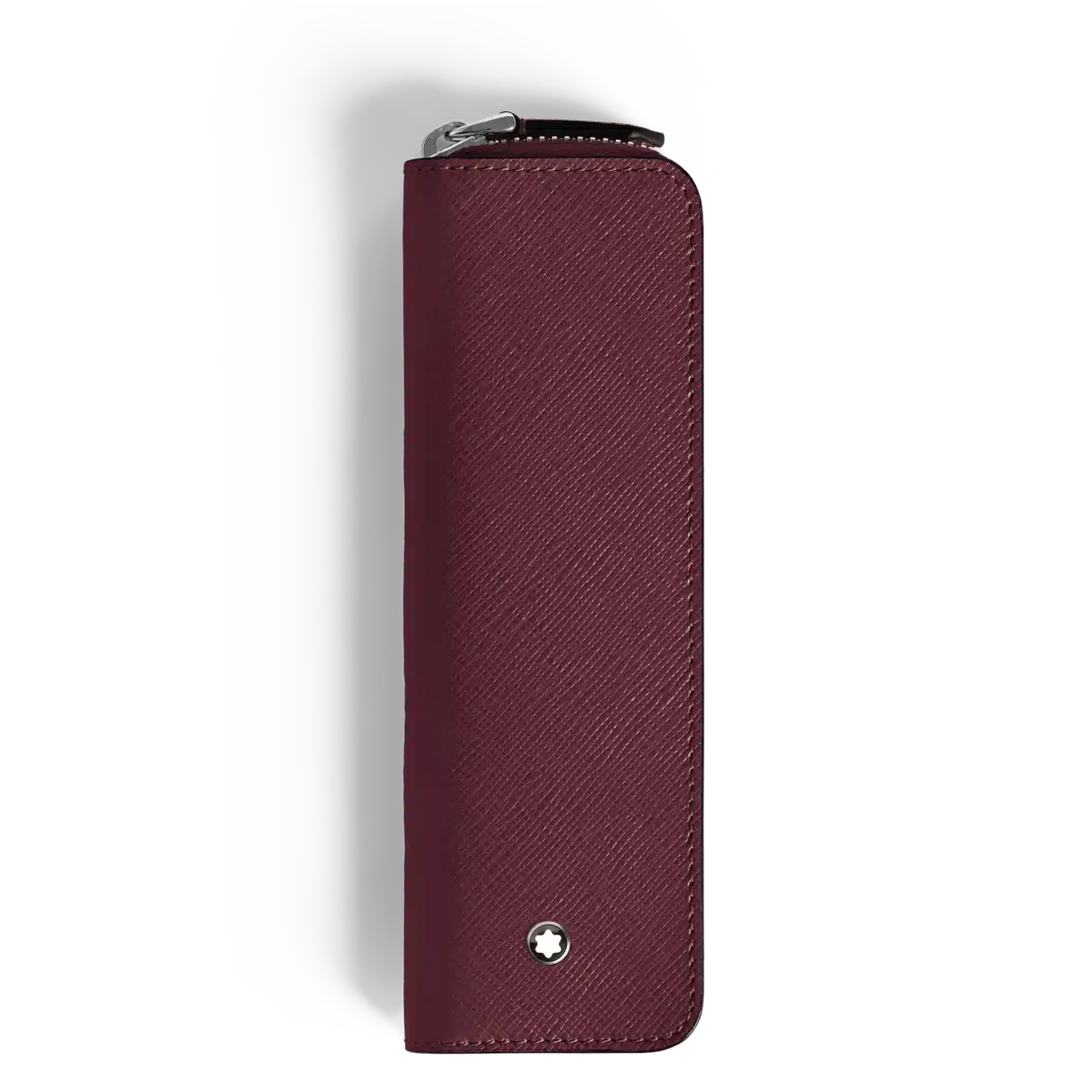 Diseñado para guardar un bolígrafo del tamaño del Meisterstück Classique o Le Grand, este estuche para bolígrafos Sartorial en color cassis es una forma elegante de transportar o guardar de forma segura su instrumento de escritura favorito. Confeccionado en piel con estampado Saffiano para un tacto refinado, el estuche con cremallera está rematado con el emblema de Montblanc.N.º de identificación MB199382
