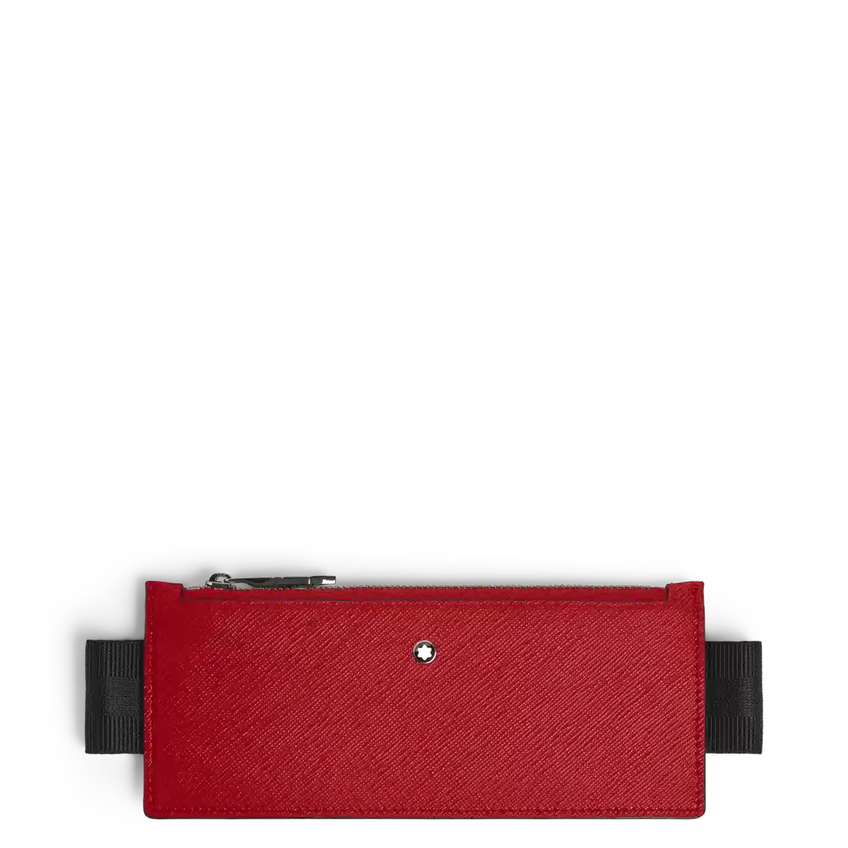 Confeccionado en piel sartorial repujada en color rojo, este estuche para bolígrafos está diseñado para llevar hasta dos instrumentos de escritura, con capacidad para los tamaños Meisterstück Classique o LeGrand. Con un distintivo tirador de cremallera metálico con forma de plumín y una banda elástica para mayor comodidad, ofrece una forma elegante y práctica de proteger y transportar sus bolígrafos favoritos.N.º de identificación: MB220376. Dimensiones: 75 mm × 15 mm × 180 mm. Peso físico: 62 g. Aviso legal sobre exportación: nuestros artesanos centran los emblemas manualmente, uno por uno. El emblema está colocado en el centro, pero la presión manual con la máquina puede desplazarlo. Se trata de una característica que no compromete la estética del producto y que, según nuestra política, no puede ser motivo de reclamación.