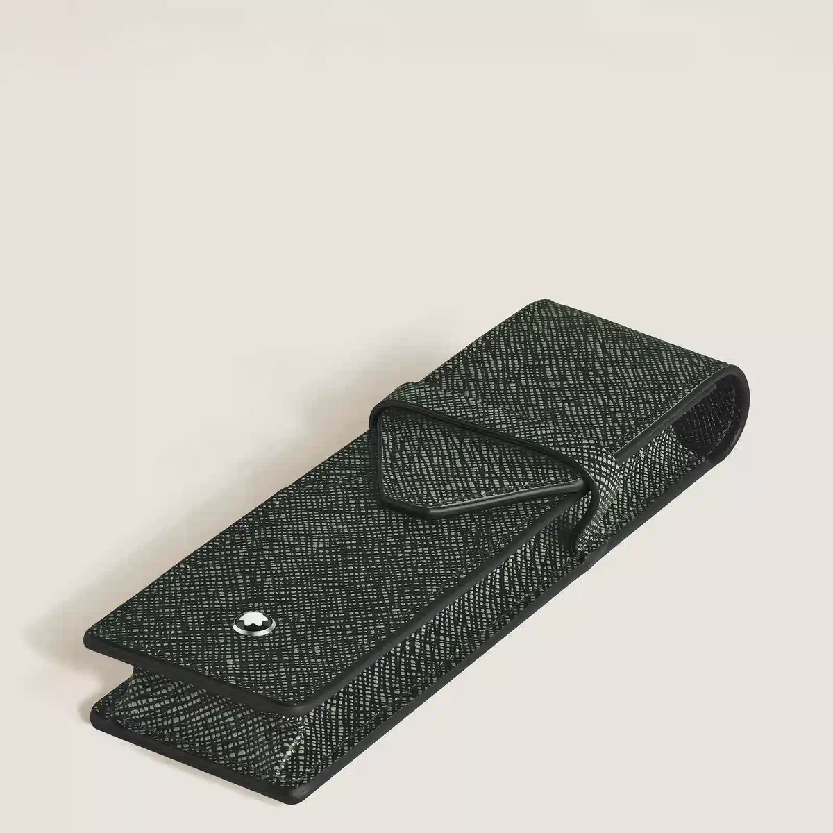 Este estuche para bolígrafos, un accesorio elegante y refinado, está diseñado para guardar hasta dos instrumentos de escritura. Confeccionado en piel sartorial repujada en una elegante combinación de dos tonos, caqui y negro, su silueta superpuesta se inspira en la forma de un sobre, rindiendo homenaje a la cultura de la escritura.N.º de identificación: MB220355. Dimensiones: 45 mm × 20 mm × 160 mm. Peso físico: 40 g. Aviso legal sobre exportación: nuestros artesanos centran los emblemas manualmente, uno por uno. El emblema está colocado en el centro, pero la presión manual con la máquina puede desplazarlo. Se trata de una característica que no compromete la estética del producto y que, según nuestra política, no puede ser objeto de reclamación.