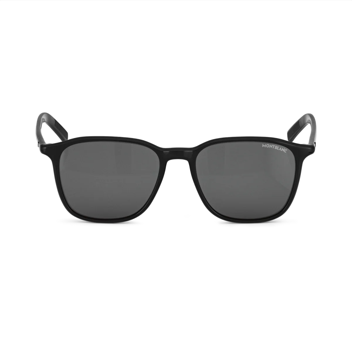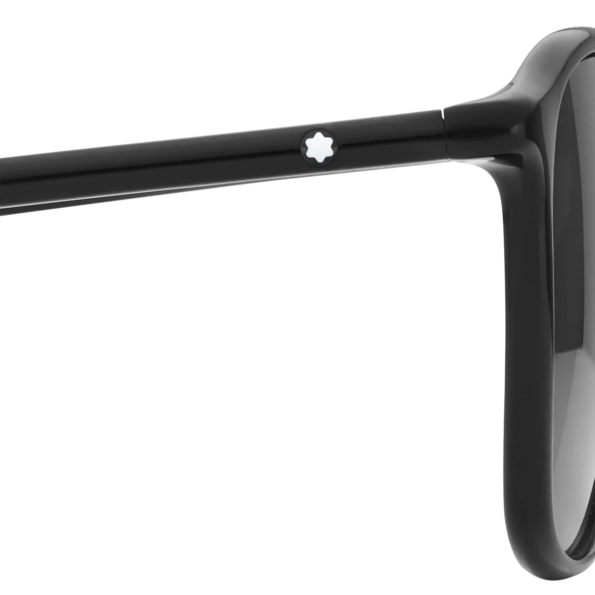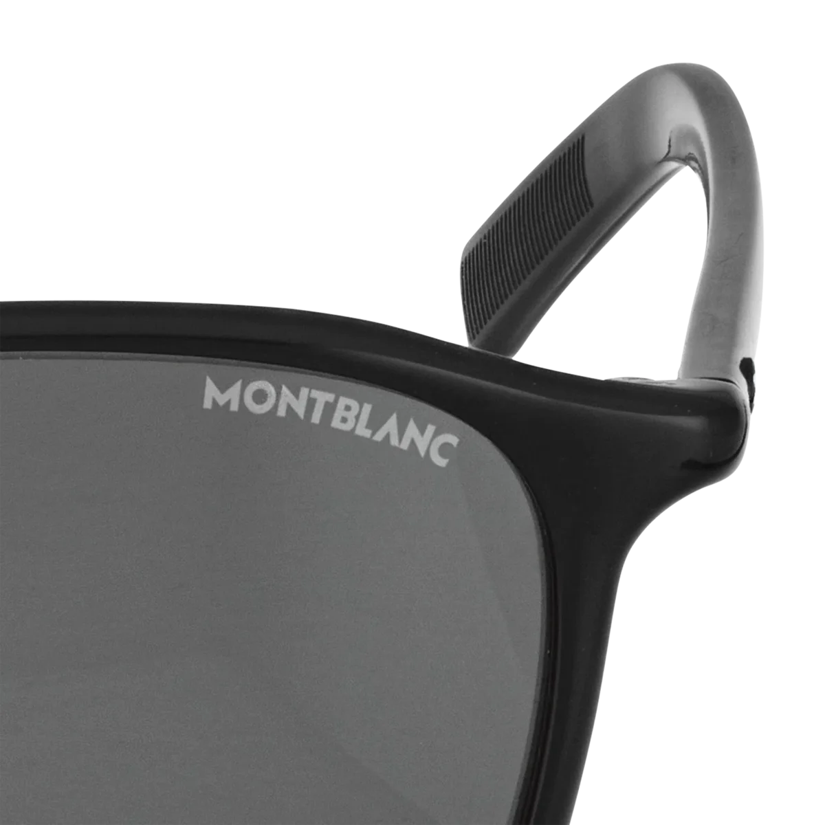 Estas gafas de sol cuadradas cuentan con una montura de acetato negro y lentes grises. El emblema de Montblanc está encapsulado en el diseño de las patillas. El logotipo de Montblanc está grabado con láser en la lente izquierda de las gafas de sol y el patrón antideslizante está grabado con láser en el lado interno de las puntas de las patillas para aumentar la comodidad. N.º de identificación: MB133440