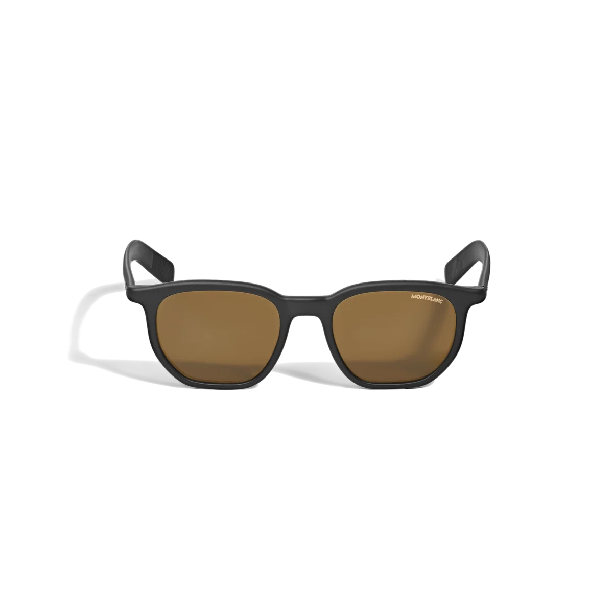 Estas gafas de sol de estilo cuadrado tienen una montura de acetato de color negro y lentes marrones. El emblema de Montblanc está encapsulado en el diseño de las patillas. El logotipo de Montblanc está grabado con láser en la lente izquierda de las gafas de sol y el patrón antideslizante está grabado con láser en el lado interno de las puntas de las patillas para aumentar la comodidad. N.º de identificación: MB135577