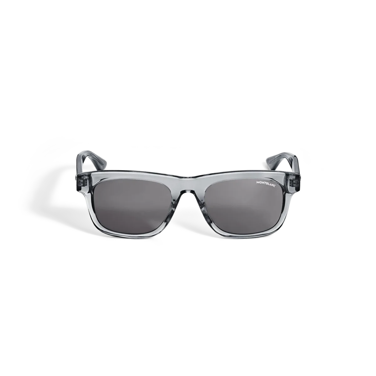 Estas gafas de sol de estilo cuadrado tienen una montura de acetato gris y lentes grises. El emblema de Montblanc está encapsulado en el diseño de la patilla. El logotipo de Montblanc está grabado con láser en la lente izquierda y el patrón antideslizante está grabado con láser en el interior de las puntas de las patillas para aumentar la comodidad.