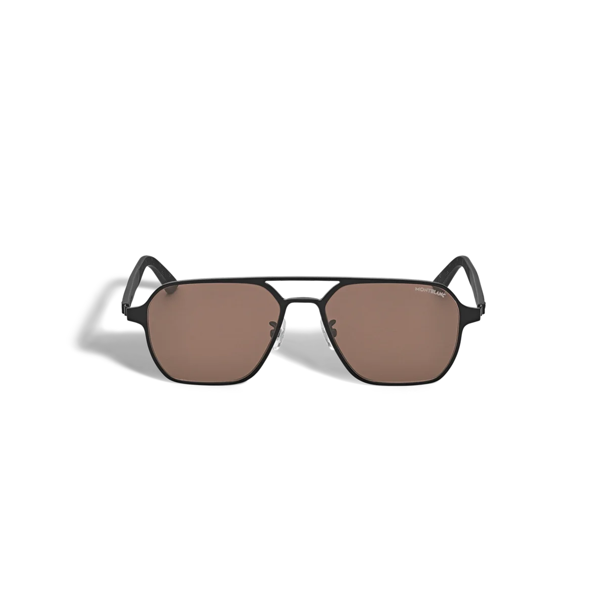 Estas gafas de sol de estilo cuadrado tienen una montura de metal negro y lentes marrones. Cuentan con un puente doble de metal en la parte delantera. El emblema de Montblanc está encapsulado en el diseño de las patillas y los extremos de estas cuentan con puntas de goma con el patrón Montblanc Extreme 3.0 para transmitir un aspecto deportivo. El logotipo de Montblanc está grabado con láser en la lente izquierda de las gafas de sol. N.º de identificación: MB134473