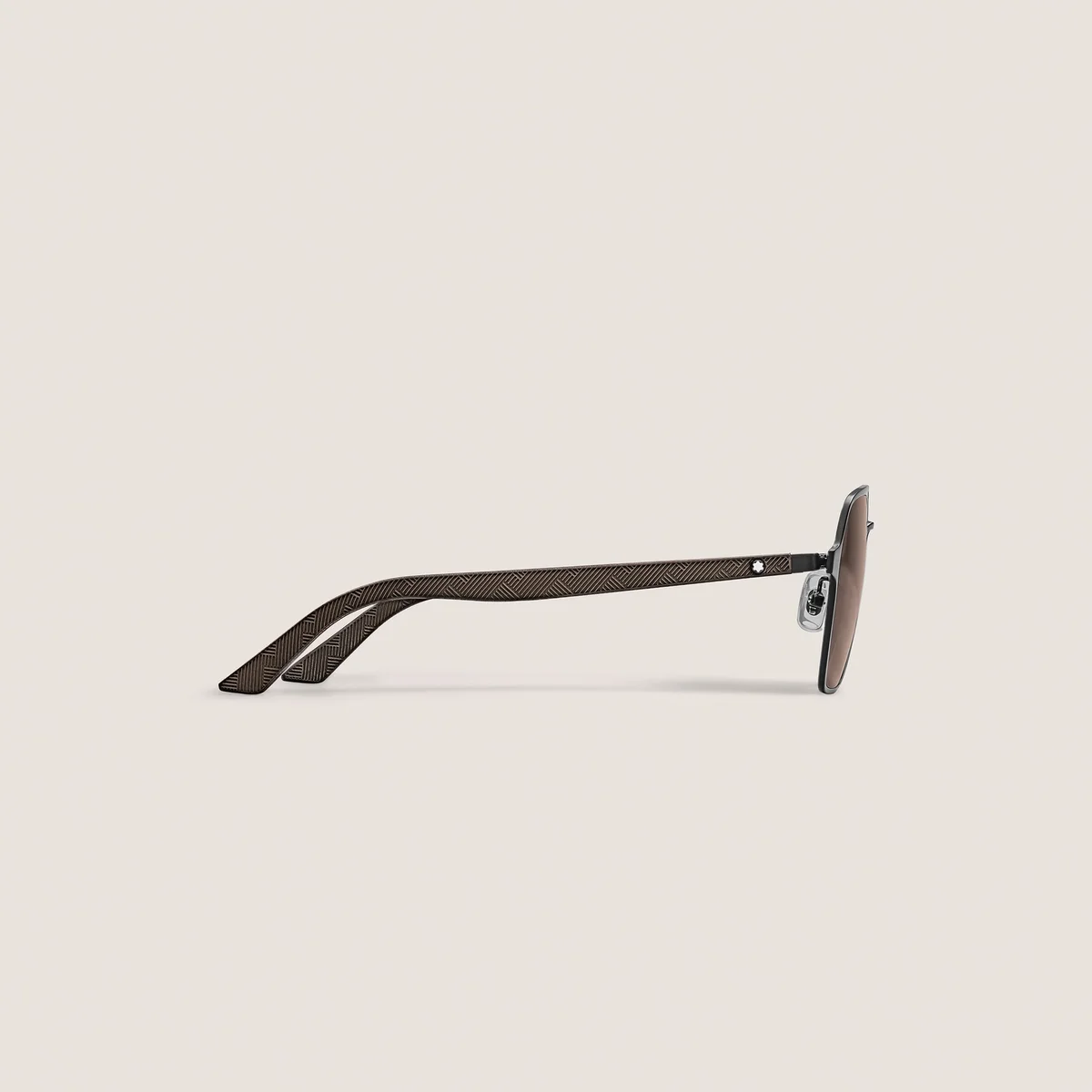 Descubra todos los detalles de las gafas de sol cuadradas con montura metálica negra. Compre en línea en la tienda oficial de Montblanc.