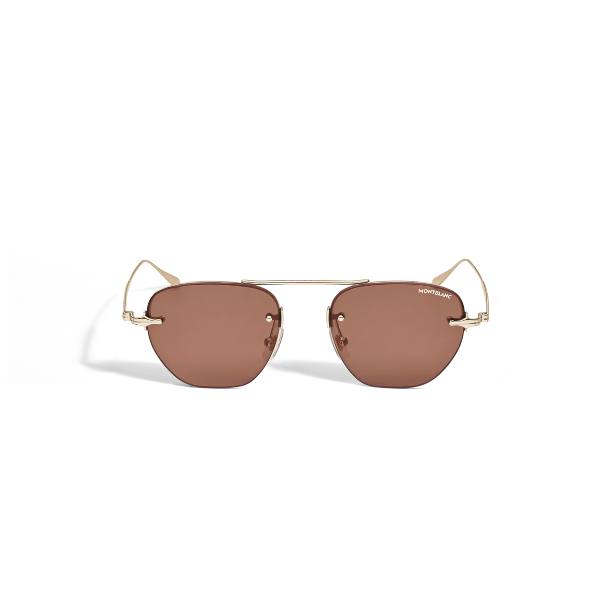 Descubra todos los detalles de las gafas de sol ovaladas con montura metálica dorada. Compre en línea en la tienda oficial de Montblanc.