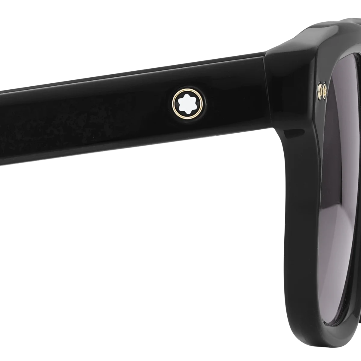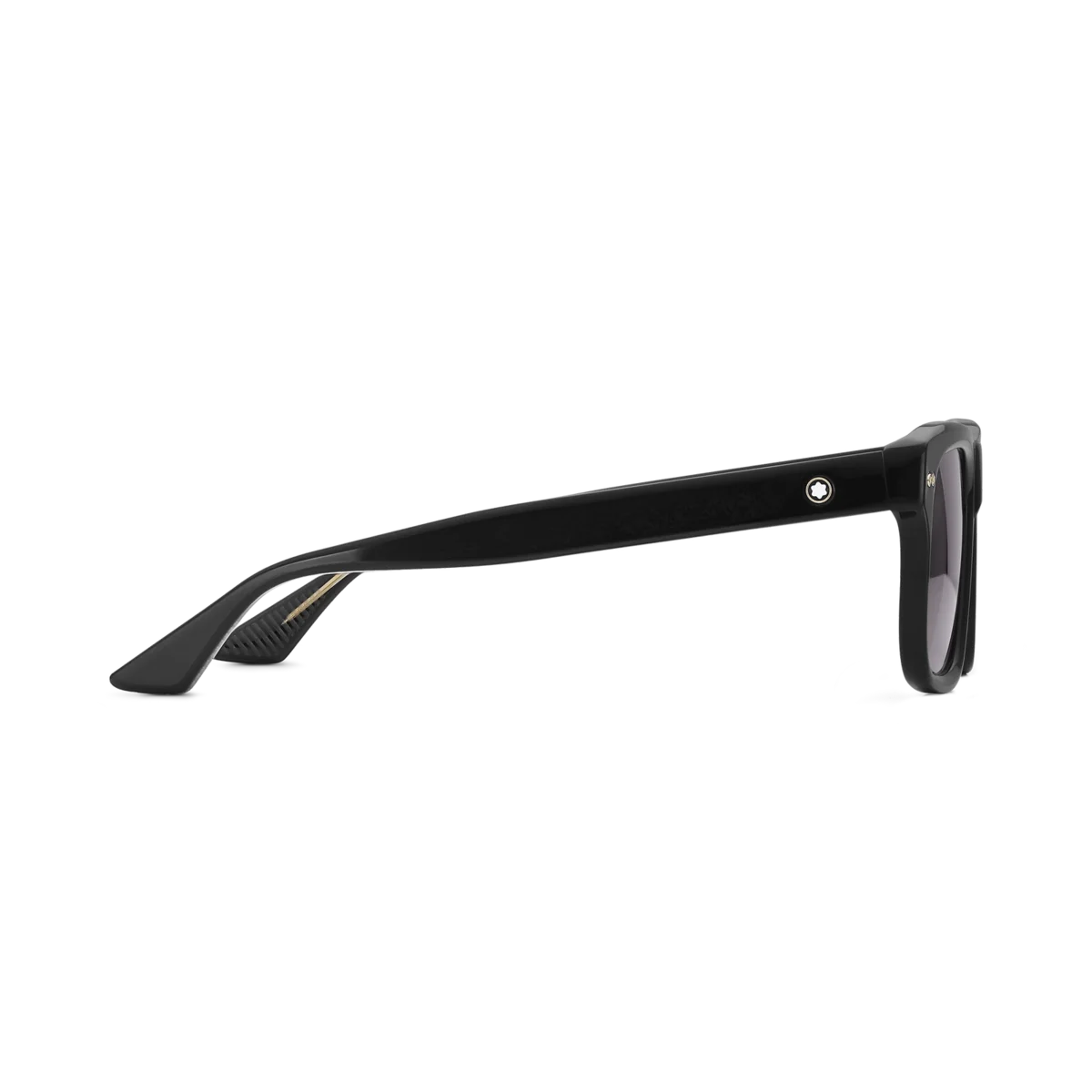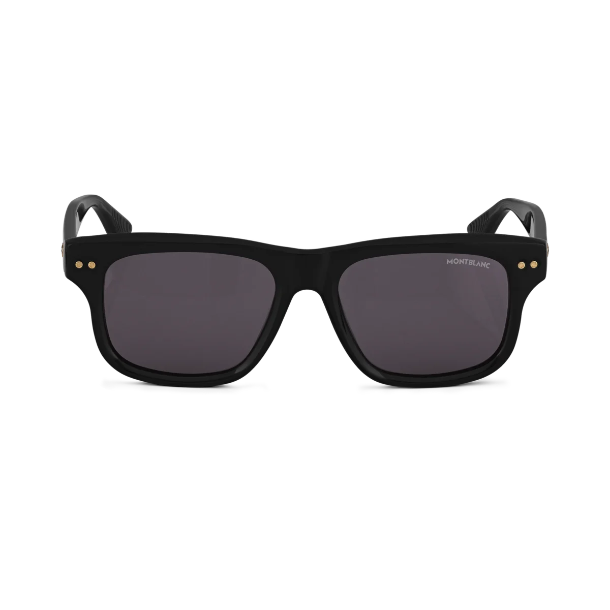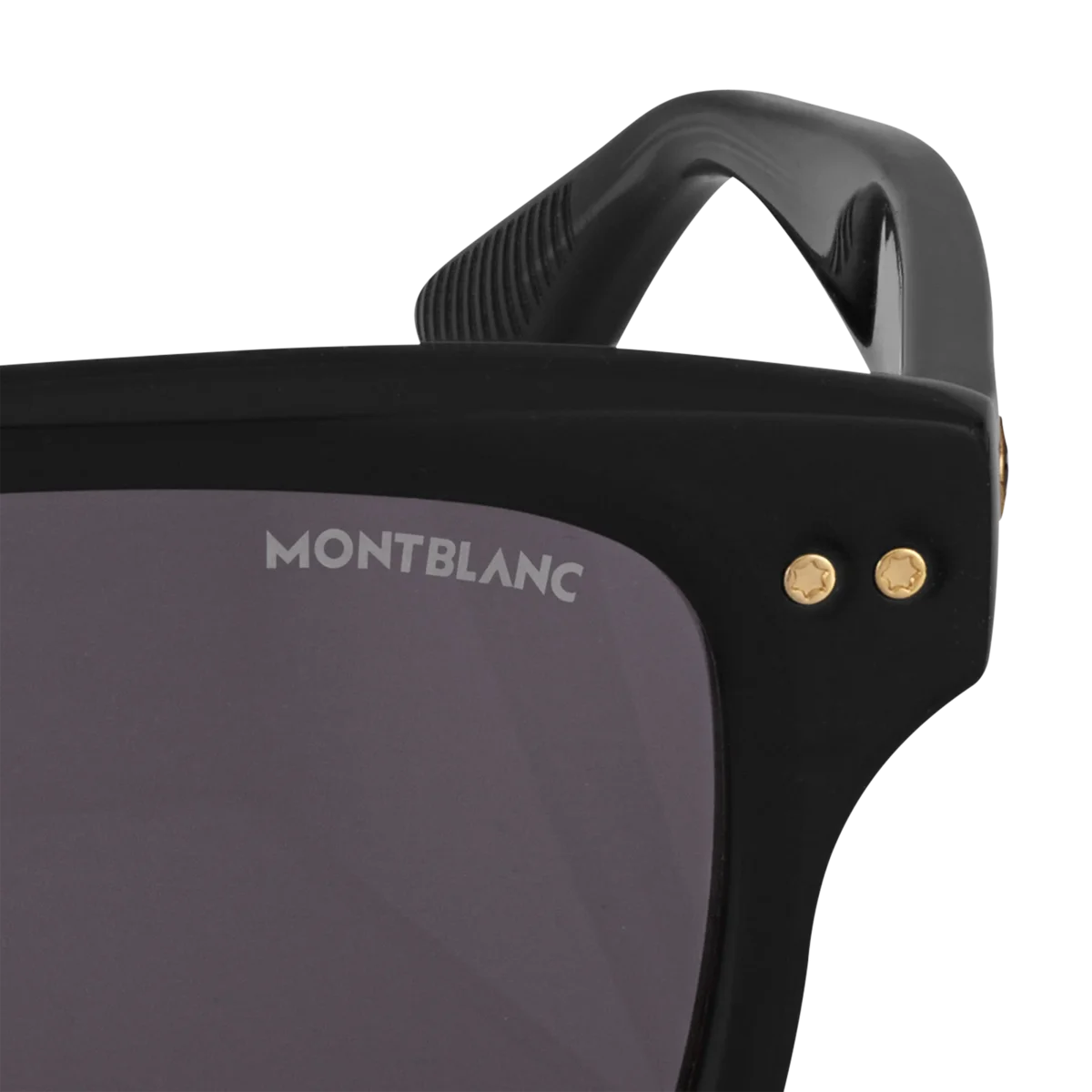 Estas gafas de sol rectangulares de forma atrevida cuentan con una montura de acetato negro y lentes ahumadas. Los remaches de la parte delantera presentan un detalle de gorro de nieve y el patrón Montblanc Extreme 3.0 incorporado en el interior del diseño de las patillas. El emblema de Montblanc está encapsulado en el diseño de la patilla. El logotipo de Montblanc está grabado con láser en la lente izquierda y el patrón antideslizante está grabado con láser en el interior de las puntas de las patillas para aumentar la comodidad. N.º de identificación: MB133438