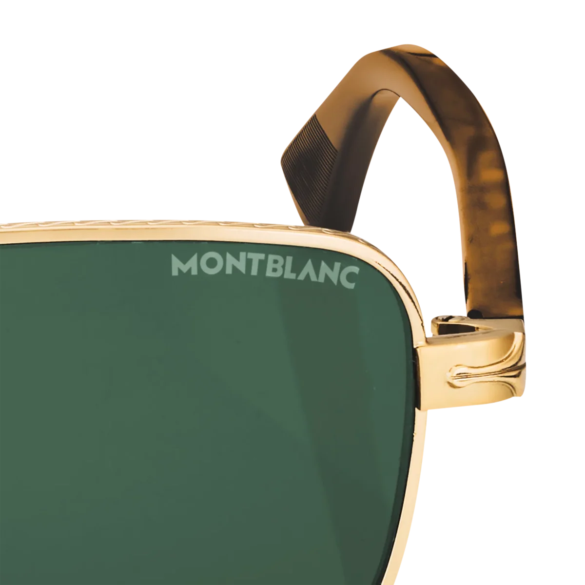 Estas gafas de sol rectangulares cuentan con una montura metálica dorada y lentes grises. Inspiradas en el diseño de la plumilla de los instrumentos de escritura, las patillas de acetato presentan un detalle decorativo en forma de plumilla. El logotipo de Montblanc está grabado con láser en la lente izquierda y el patrón antideslizante está grabado con láser en el interior de las puntas de las patillas para aumentar la comodidad. N.º de identificación: MB133462