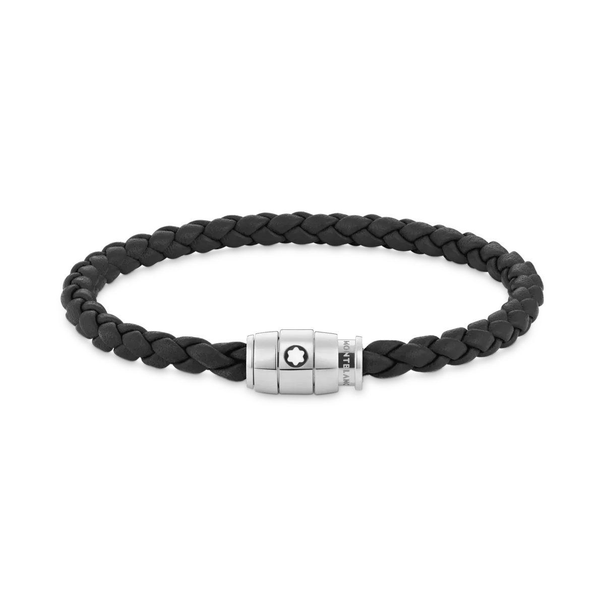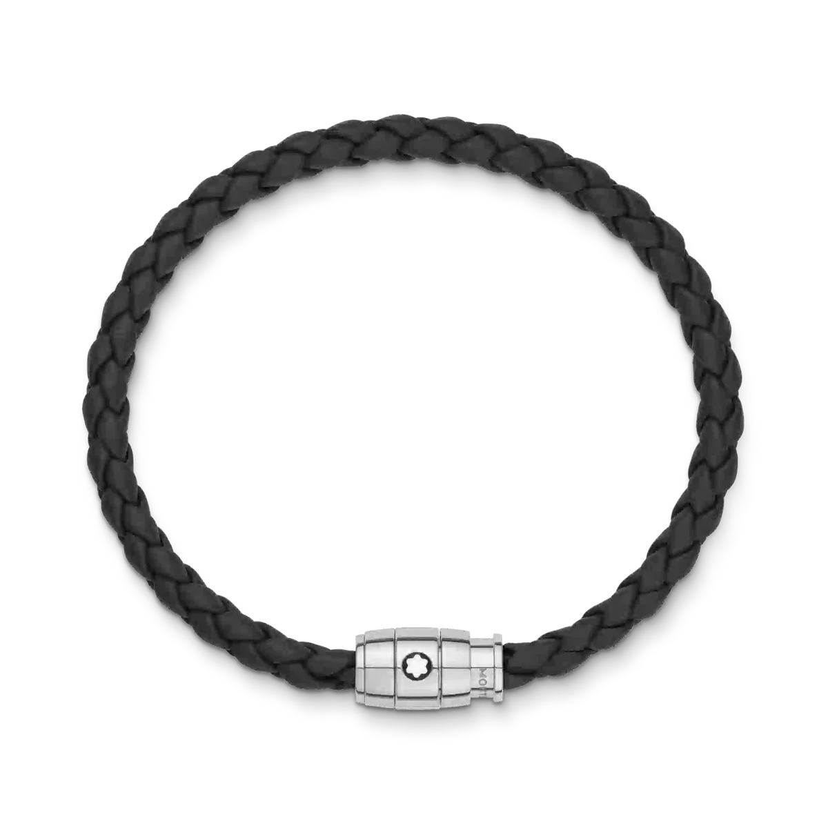 La pieza de joyería, tejida en cuero negro, tiene un cierre de acero inoxidable pulido con un anillo de acero con el emblema de Montblanc.N.º de identificación MB130897 Peso físico 12 g Aviso legal de exportación Los emblemas se centran manualmente, uno por uno, por nuestros artesanos. El emblema está colocado en el centro, pero la presión manual con la máquina puede desplazarlo. Se trata de una característica que no compromete la estética del producto y que, según nuestra política, no puede ser objeto de reclamación.