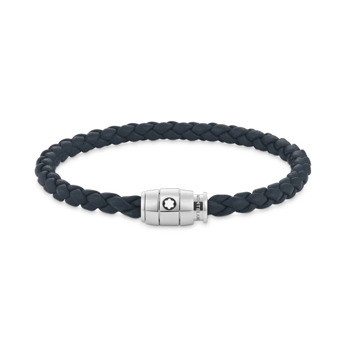 Descubra todos los detalles de la pulsera mediana de piel suave azul avio. Compre en línea en la tienda oficial de Montblanc.