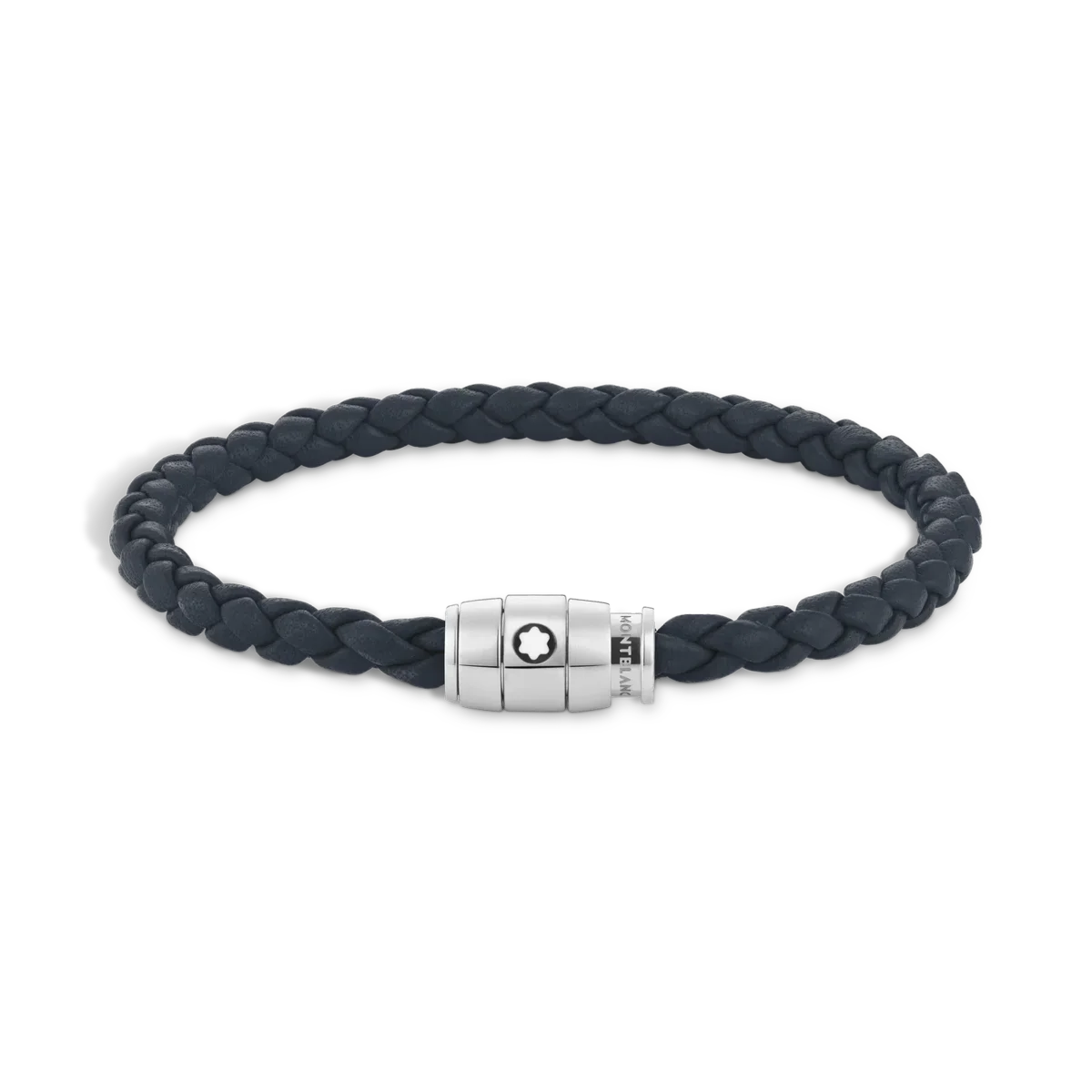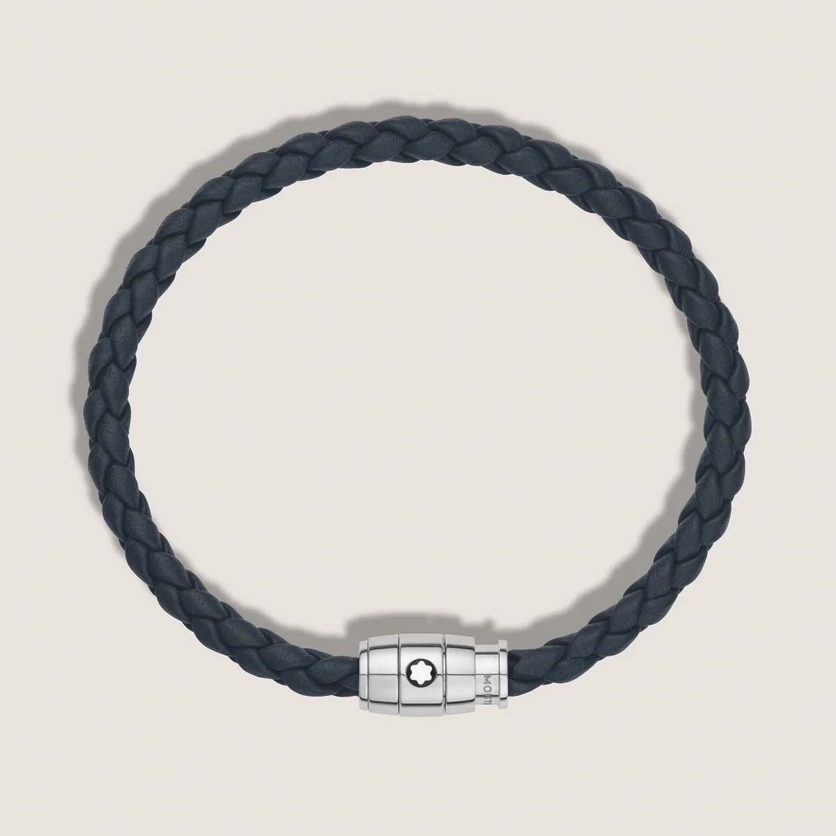 Descubra todos los detalles de la pulsera pequeña de piel suave azul avio. Compre en línea en la tienda oficial de Montblanc.