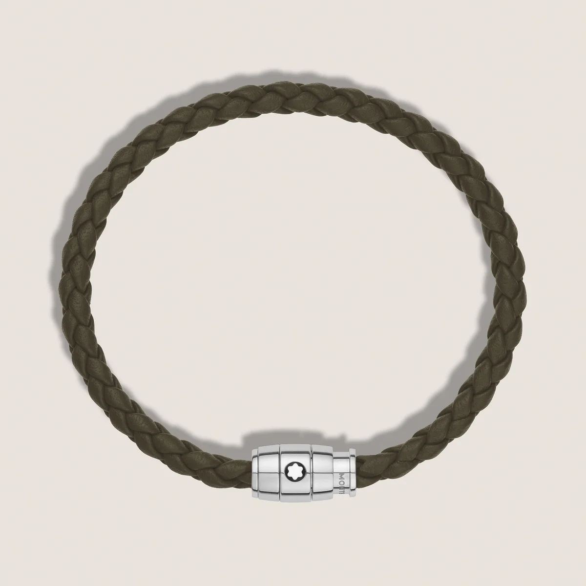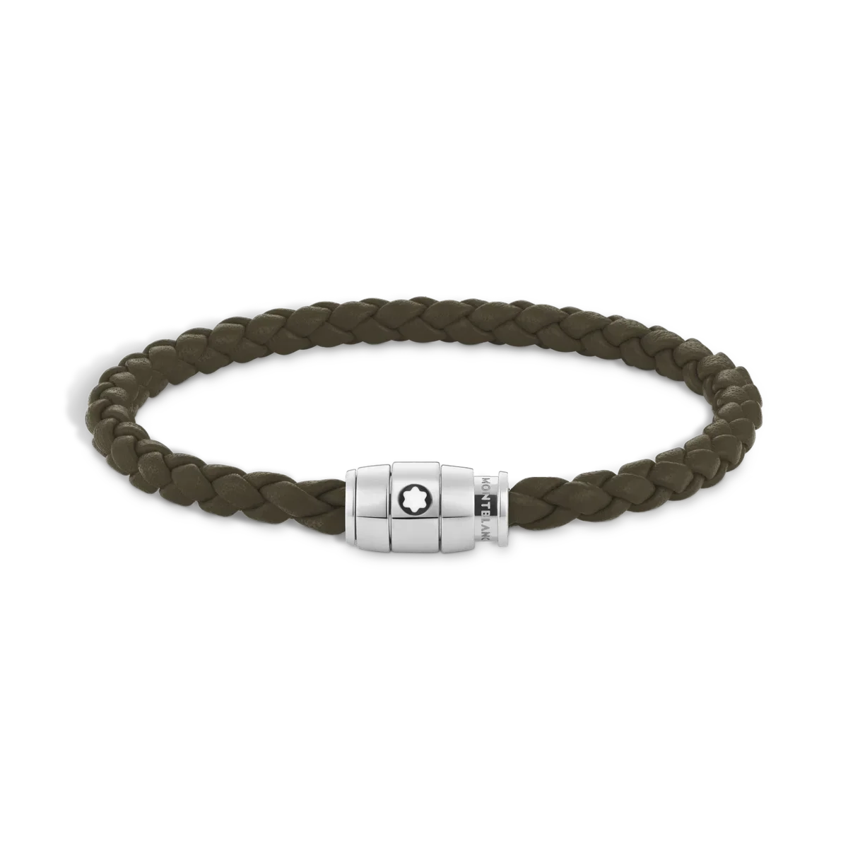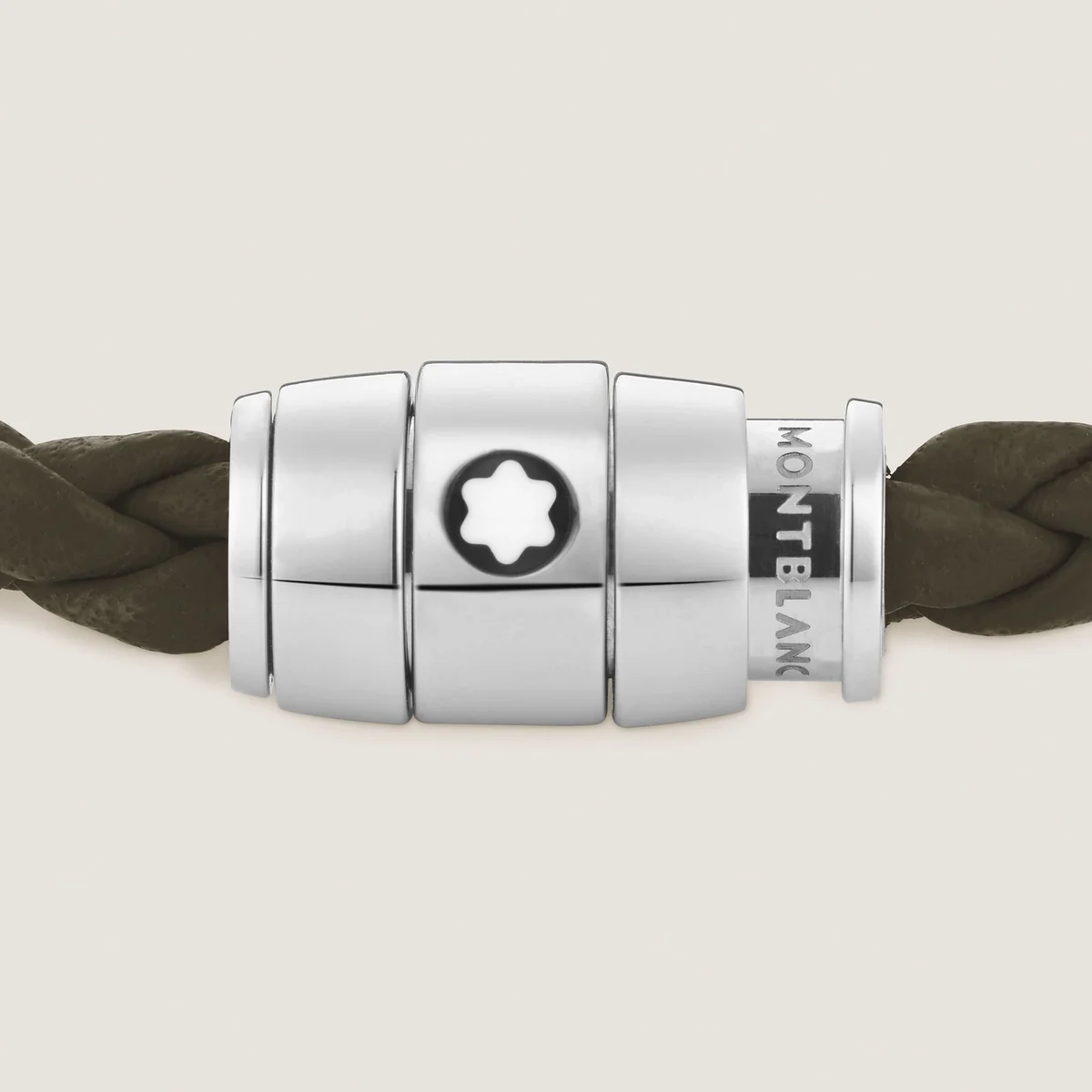 Descubra todos los detalles de la pulsera pequeña de piel suave color caqui. Compre en línea en la tienda oficial de Montblanc.