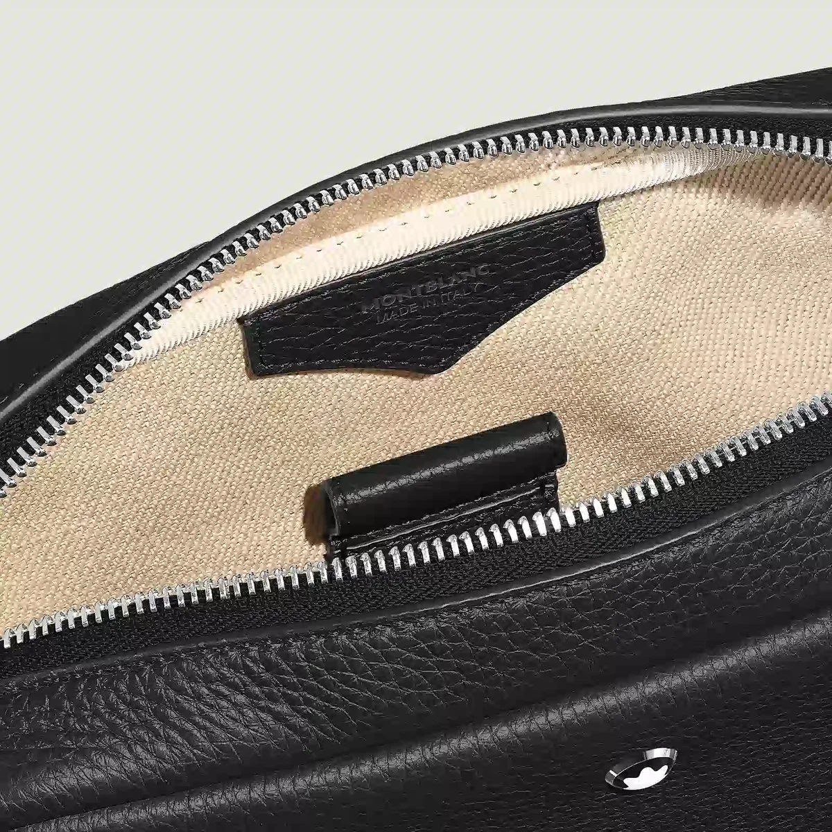 Confeccionado en piel de becerro granulada negra, este pequeño bolso bandolera presenta una silueta rectangular realzada por detalles de piel Meisterstück, como un llamativo tirador de cremallera con forma de plumín y unas refinadas costuras de silla de montar que recuerdan el trazo de una pluma. Diseñado para ser práctico, ofrece un compartimento principal con un bolsillo abierto y dos presillas para instrumentos de escritura, mientras que la correa para el hombro desmontable y ajustable proporciona opciones de transporte versátiles con un estilo desenfadado. N.º de identificación MB220208 Dimensiones 250 mm * 70 mm * 190 mm