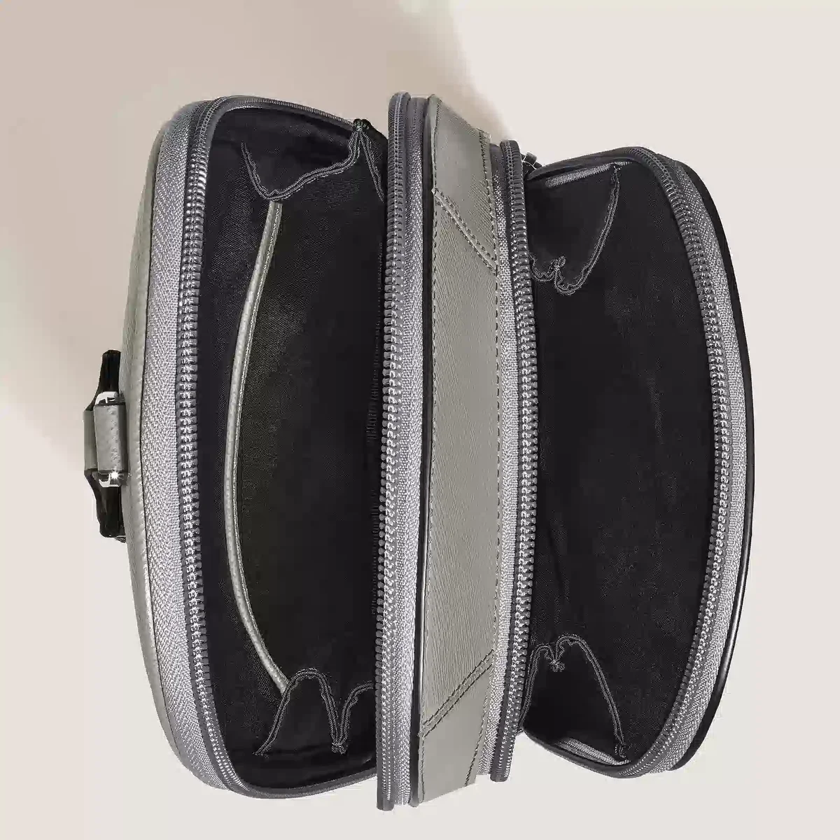 El nuevo bolso bandolera Sartorial, elaborado en elegante piel Saffiano con relieve gris medio, aporta un toque de modernidad informal a tu look diario. Este funcional accesorio cuenta con un cierre de cremallera seguro y una correa ajustable para mayor comodidad. Ofrece un espacioso compartimento principal, un bolsillo interno con cremallera para objetos de valor y almacenamiento externo que incluye un bolsillo con cremallera, tres bolsillos abiertos y ranuras para tres tarjetas de crédito.