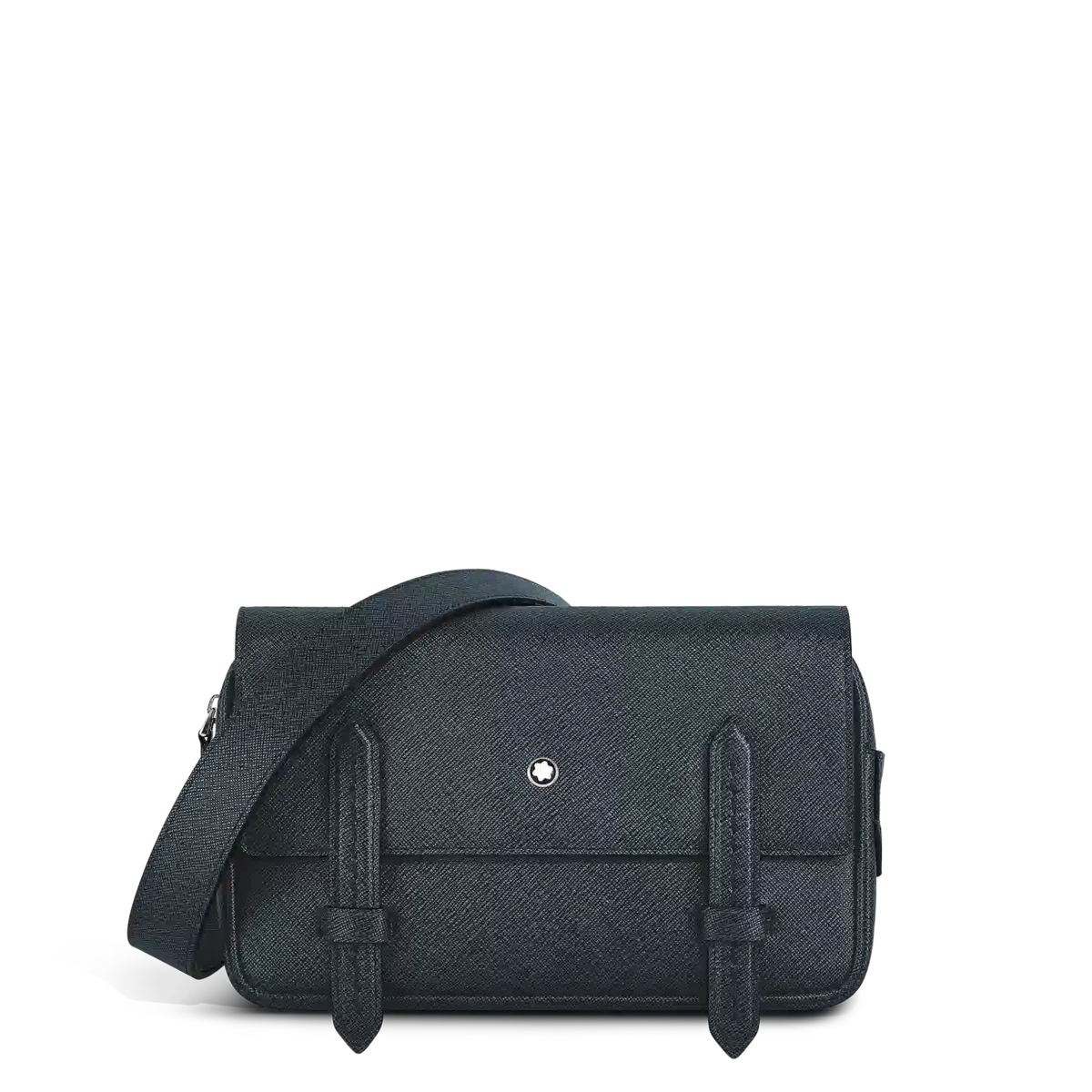 Este bolso bandolera combina minimalismo y sofisticación, lo que lo hace ideal tanto para ocasiones informales como formales. Confeccionado en piel Sartorial con relieve en dos tonos, negro y azul, su solapa frontal está adornada con un emblema Montblanc y dos correas verticales. El espacioso compartimento principal ofrece mucho espacio para los objetos de uso diario, mientras que un bolsillo con cremallera permite guardar de forma segura los objetos más pequeños. Tenga en cuenta que este producto contiene imanes. Antes de utilizarlo, consulte la sección sobre imanes del folleto de la Guía de servicio que acompaña al producto o la sección de Atención al cliente del sitio web de Montblanc. Si tiene alguna duda, consulte a su profesional de la salud.