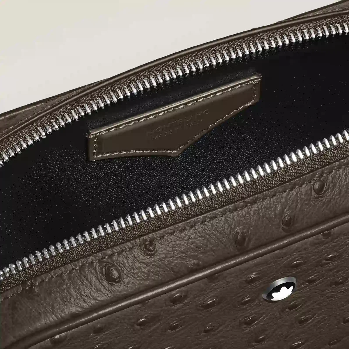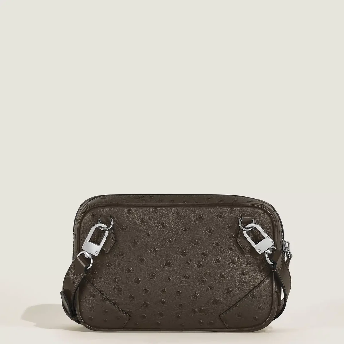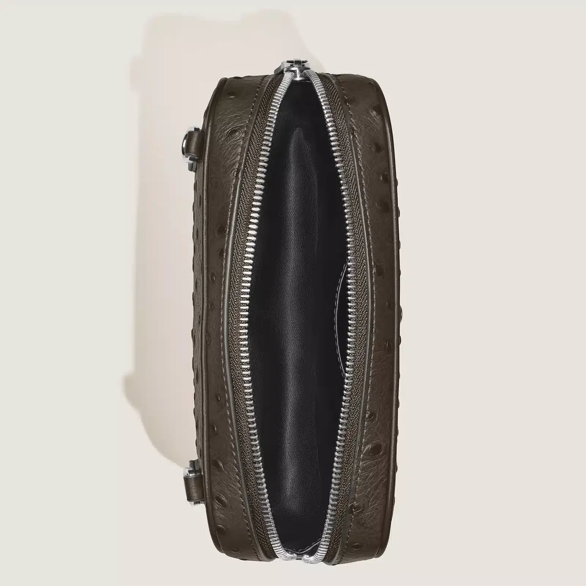 Confeccionado en elegante piel de avestruz con estampado caqui, el nuevo mini bolso bandolera es un elegante homenaje a la cultura de la escritura. Sus distintivos detalles en las esquinas añaden un toque único a su diseño compacto y funcional. Con una correa para el hombro desmontable y ajustable y un bolsillo abierto en el interior del compartimento principal, es un complemento refinado y versátil para el uso diario.N.º de identificación MB220469 Dimensiones 180 mm * 55 mm * 140 mm