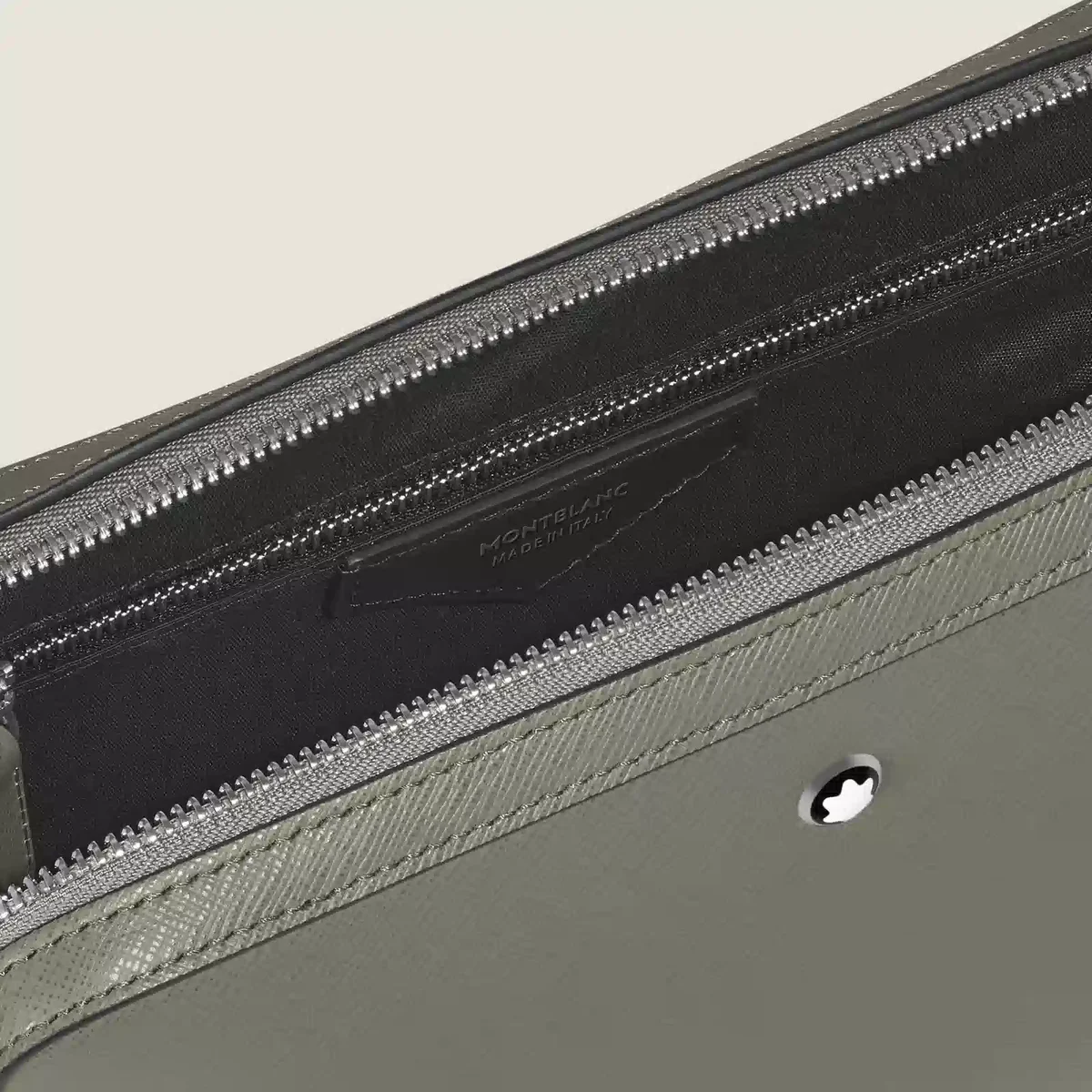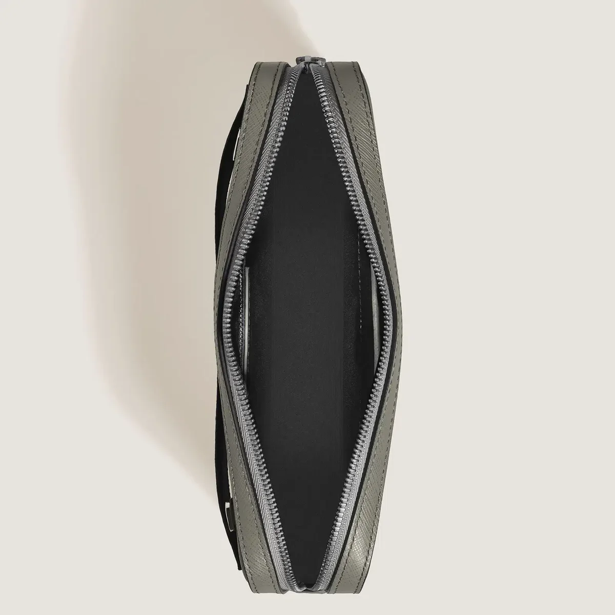 Inspirado en el mundo de la escritura, este bolso compacto se puede llevar en la mano o al hombro gracias a su correa ajustable y desmontable. Confeccionado en piel con estampado Saffiano, su elegante color gris medio le da un toque de sofisticación, mientras que su espacioso interior y su bolsillo interno abierto ofrecen espacio para los objetos esenciales para un día o una noche en la ciudad. Para una mayor funcionalidad, se puede acoplar a bolsos más grandes mediante la banda de piel de la parte trasera. N.º de identificación: MB199365. Dimensiones: 240 mm * 40 mm * 170 mm. Peso físico: 400 g. Aviso legal exportable: los emblemas están centrados manualmente. 170 mm