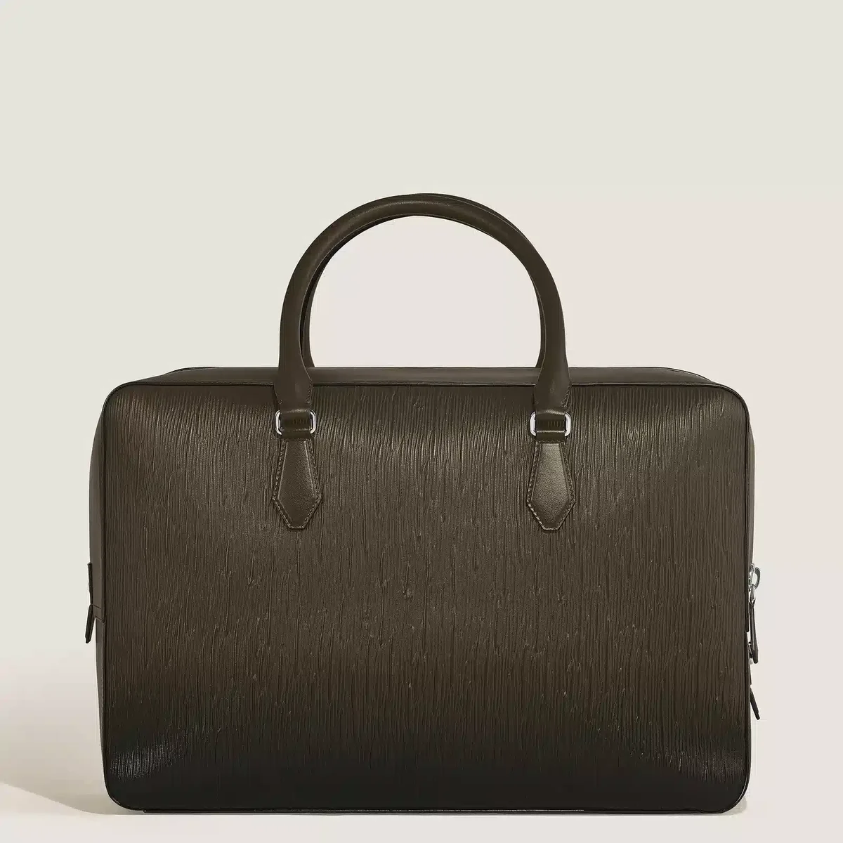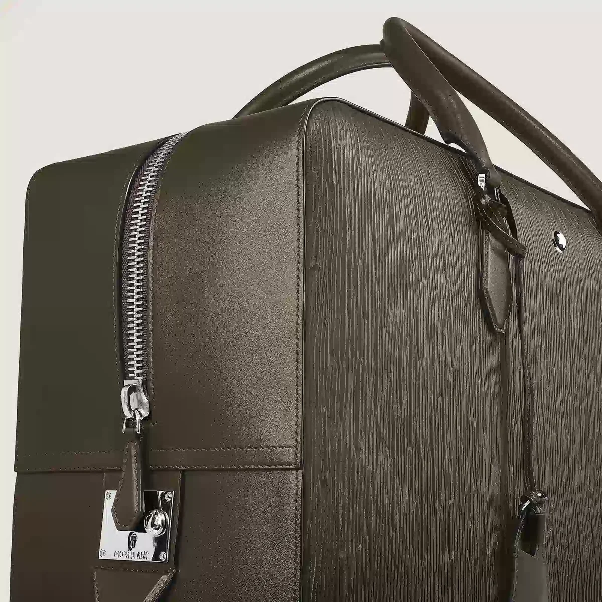 Parte de la línea Ink, este bolso de piel Montblanc 149 está confeccionado en piel Corteccia de color caqui. Inspirado en la textura de la corteza de los árboles, el cuero se somete a un meticuloso proceso de estampado para crear el motivo de la corteza, seguido de un efecto sfumato aplicado a mano, logrando un rico degradado que realza su elegancia natural. Diseñado para viajes cortos y escapadas de fin de semana, el bolso ofrece un interior espacioso y un cierre seguro con llave para mayor tranquilidad. Los detalles característicos de las esquinas, inspirados en la silueta de un frasco de tinta, rinden homenaje a la tradición de Montblanc en el mundo de la escritura, lo que lo convierte en un compañero de viaje refinado y funcional. N.º de identificación: MB220268. Dimensiones: 455 mm * 195 mm * 295 mm. Peso físico: 1800 g. Aviso legal exportable: 1800 g. 195 mm * 295 mm