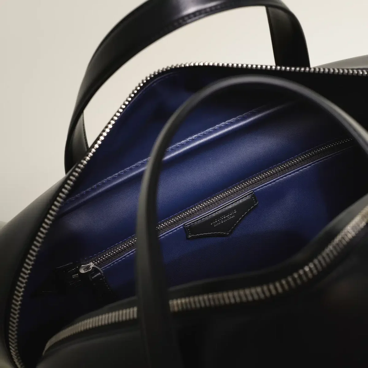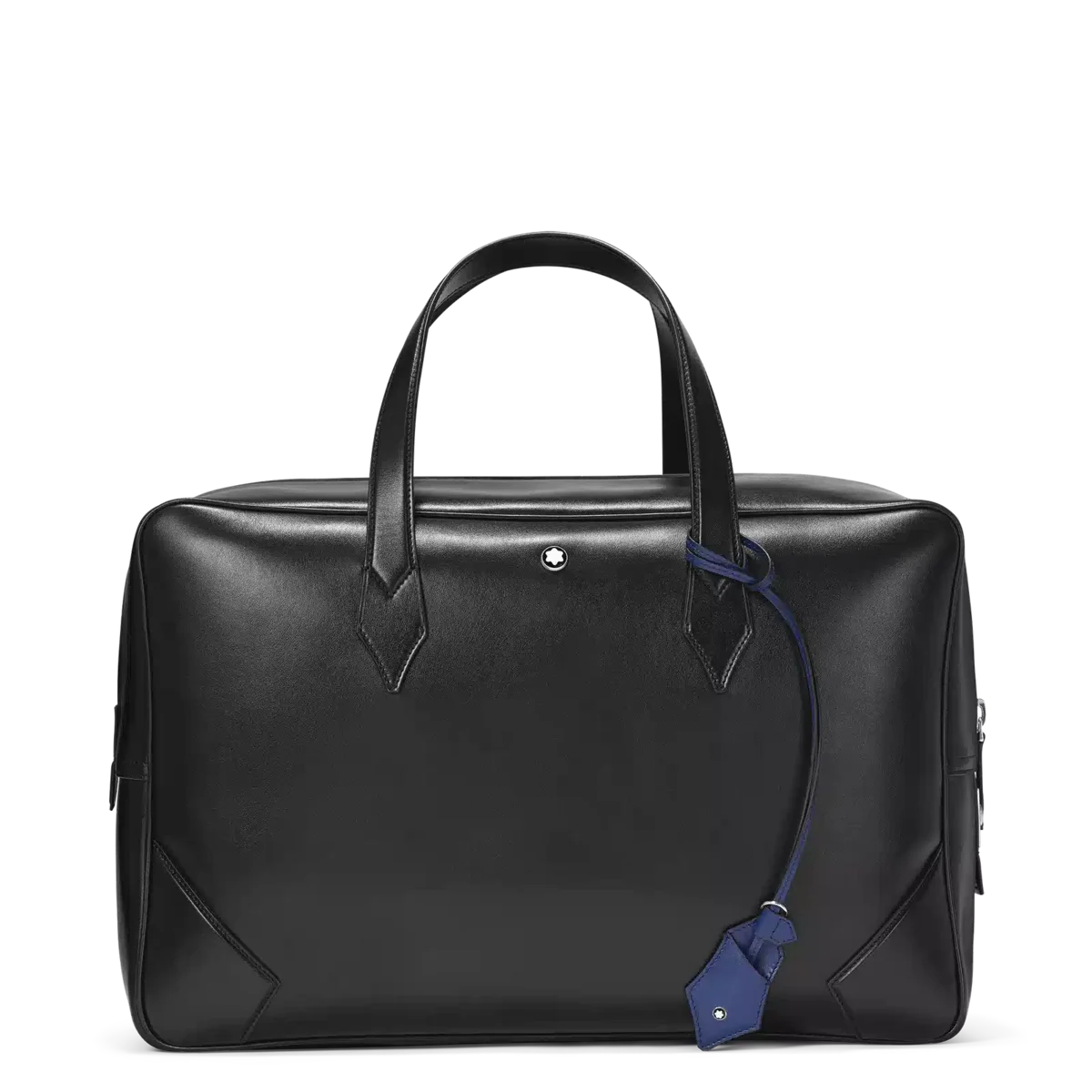 Inspirado en la cultura de la escritura, el bolso Meisterstück Duffle es ideal para viajes cortos y fines de semana. Confeccionado en una nueva piel negra de brillo intenso, todos sus detalles hablan el lenguaje de la plumilla: las costuras, los tiradores de las cremalleras y las asas recuerdan la forma de la plumilla, la esencia de Montblanc. Una versión más grande del logotipo ilumina el bolso. Con una gran capacidad, cuenta con un cierre seguro con cerradura y llave. N.º de identificación: MB129666. Dimensiones: 455 mm * 195 mm * 295 mm. Peso físico: 2180 g. Aviso legal exportable: 195 mm * 295 mm. 195 mm * 295 mm