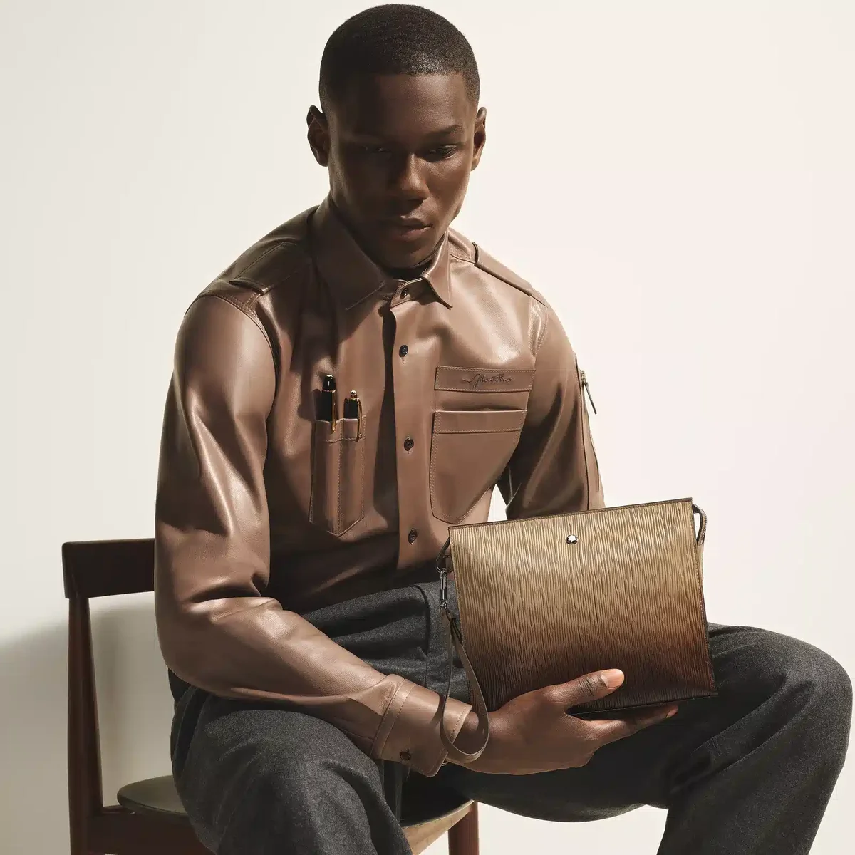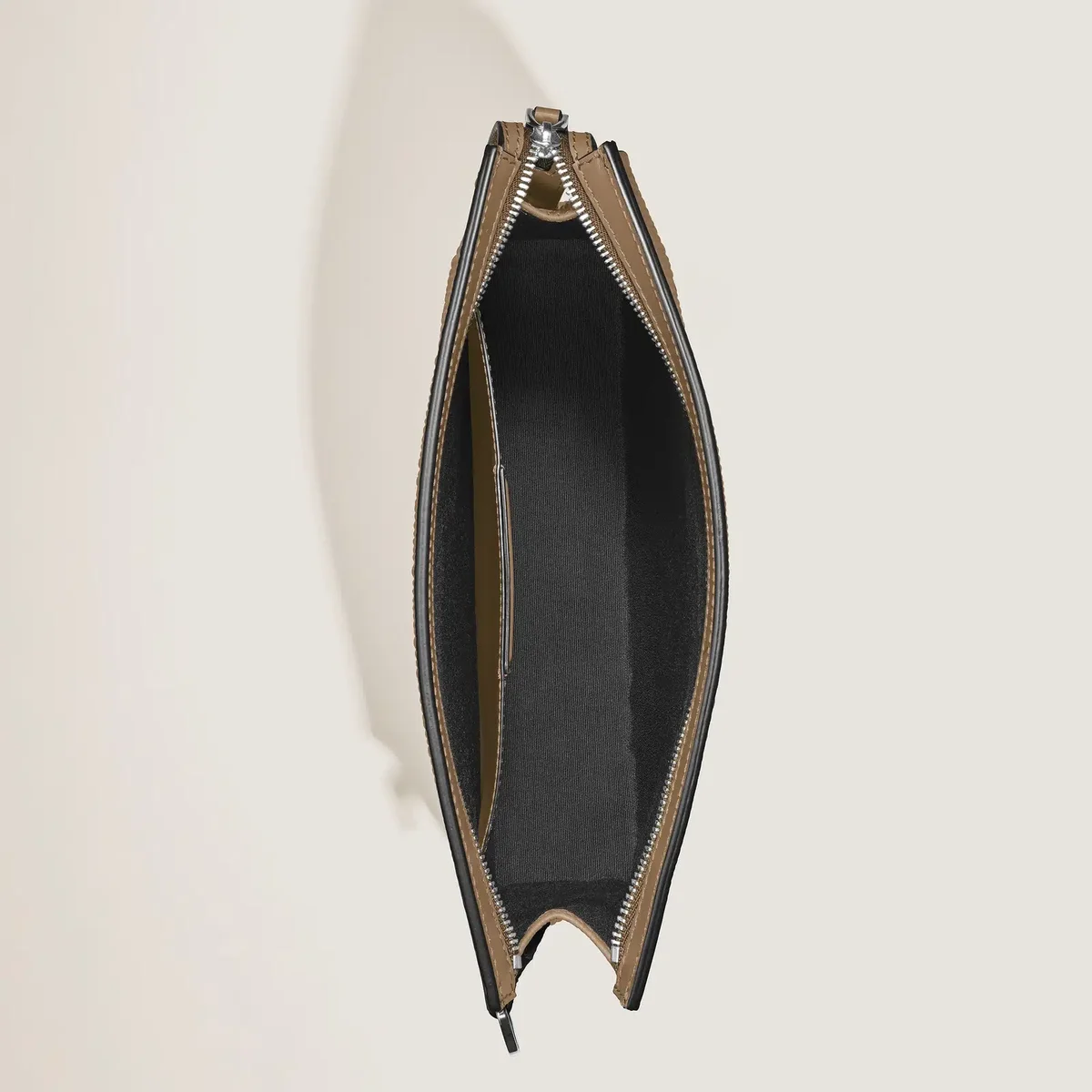 Lleve sus objetos esenciales diarios con estilo con esta sofisticada bolsa inspirada en la forma de un sobre para honrar la tradición de Montblanc en el mundo de la escritura. Confeccionada en piel Corteccia color arena, su motivo inspirado en la corteza se realza con un sombreado aplicado a mano. Su espacioso compartimento principal cuenta con un bolsillo abierto adicional para mayor comodidad y dos presillas para instrumentos de escritura. Versátil y refinado, se puede llevar en la mano, bajo el brazo o en la muñeca gracias a su asa desmontable. N.º de identificación: MB220270. Dimensiones: 240 mm * 45 mm * 200 mm. Peso físico: 330 g. Aviso legal exportable: los emblemas están centrados manualmente. 200 mm