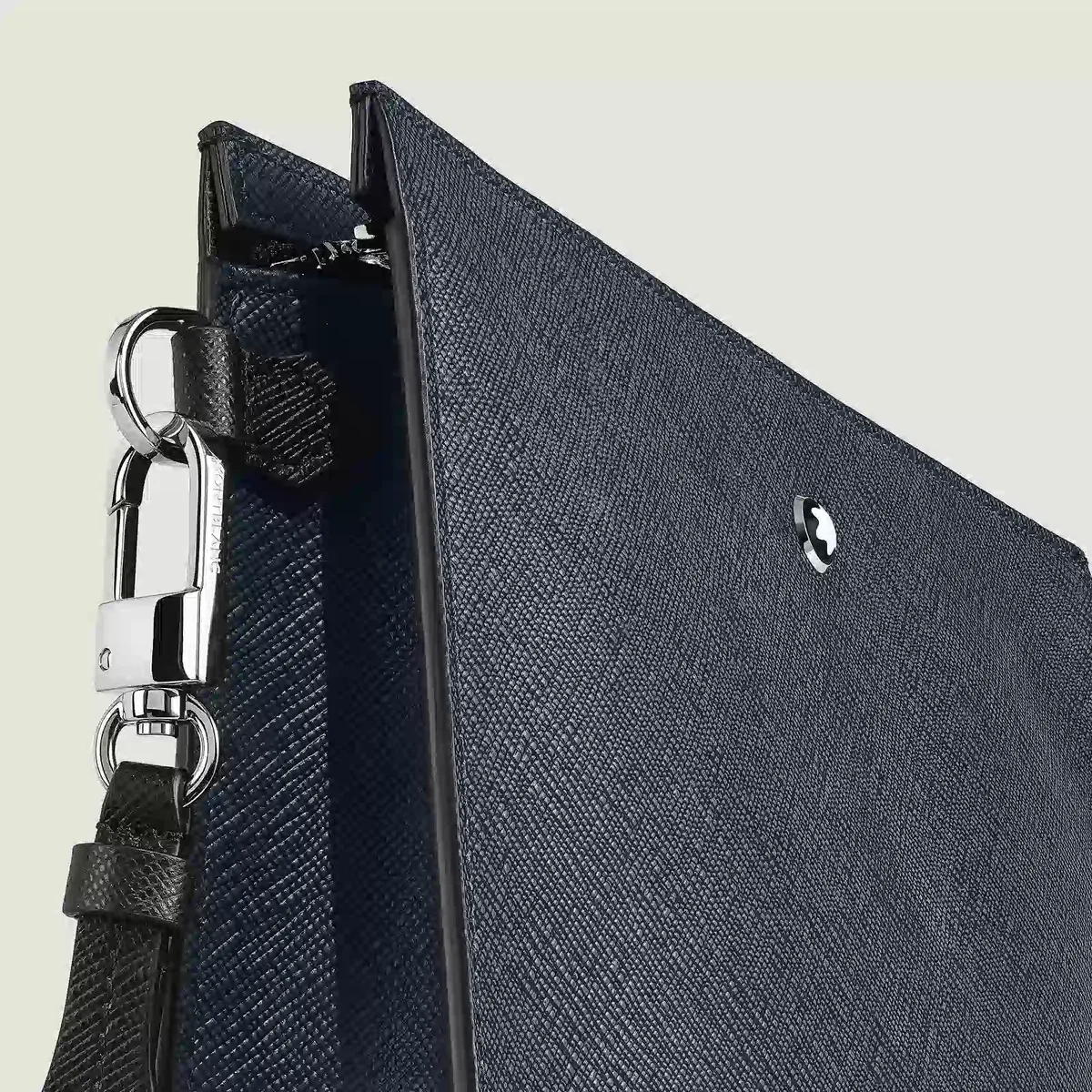 Lleve sus objetos esenciales diarios con estilo con este sofisticado bolso de mano. Fabricado en piel Sartorial repujada en una refinada combinación de dos tonos, azul y negro, cuenta con un espacioso compartimento principal y un bolsillo abierto adicional para mayor comodidad. Versátil y elegante, se puede llevar en la mano, bajo el brazo o en la muñeca gracias a su asa desmontable. Identificación n.º MB220428 Dimensiones 240 mm * 45 mm * 200 mm