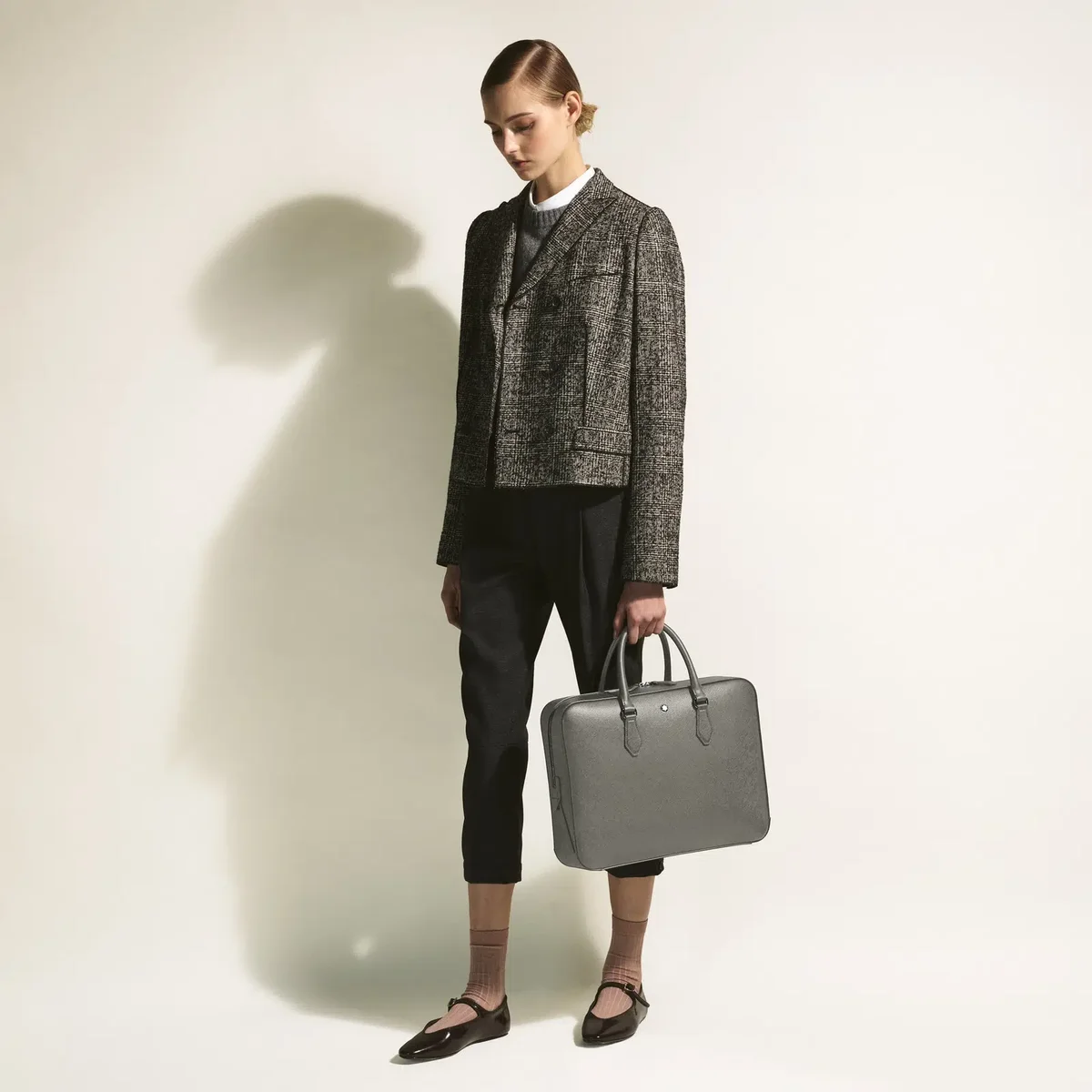 Este elegante maletín cuenta con un espacioso compartimento principal para transportar documentos A4, dispositivos electrónicos y otros artículos profesionales con estilo. Sus instrumentos de escritura se pueden guardar en bolsillos específicos, mientras que el diseño modular adaptable permite acoplarlo a otros bolsos de la colección Sartorial. La lujosa piel estampada en gris medio le da un aire de sofisticación. N.º de identificación: MB199358. Dimensiones: 380 mm * 90 mm * 295 mm Peso físico 1380 g Aviso legal exportable Los emblemas son centrados manualmente, uno por uno, por nuestros artesanos. El emblema está colocado en el centro, pero la presión manual de la máquina puede desplazarlo. Se trata de una característica que no compromete la estética del producto y que, según nuestra política, no puede ser motivo de reclamación.
