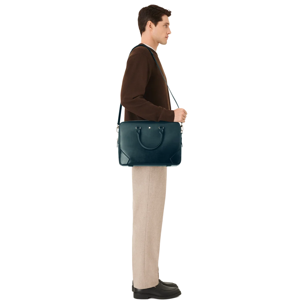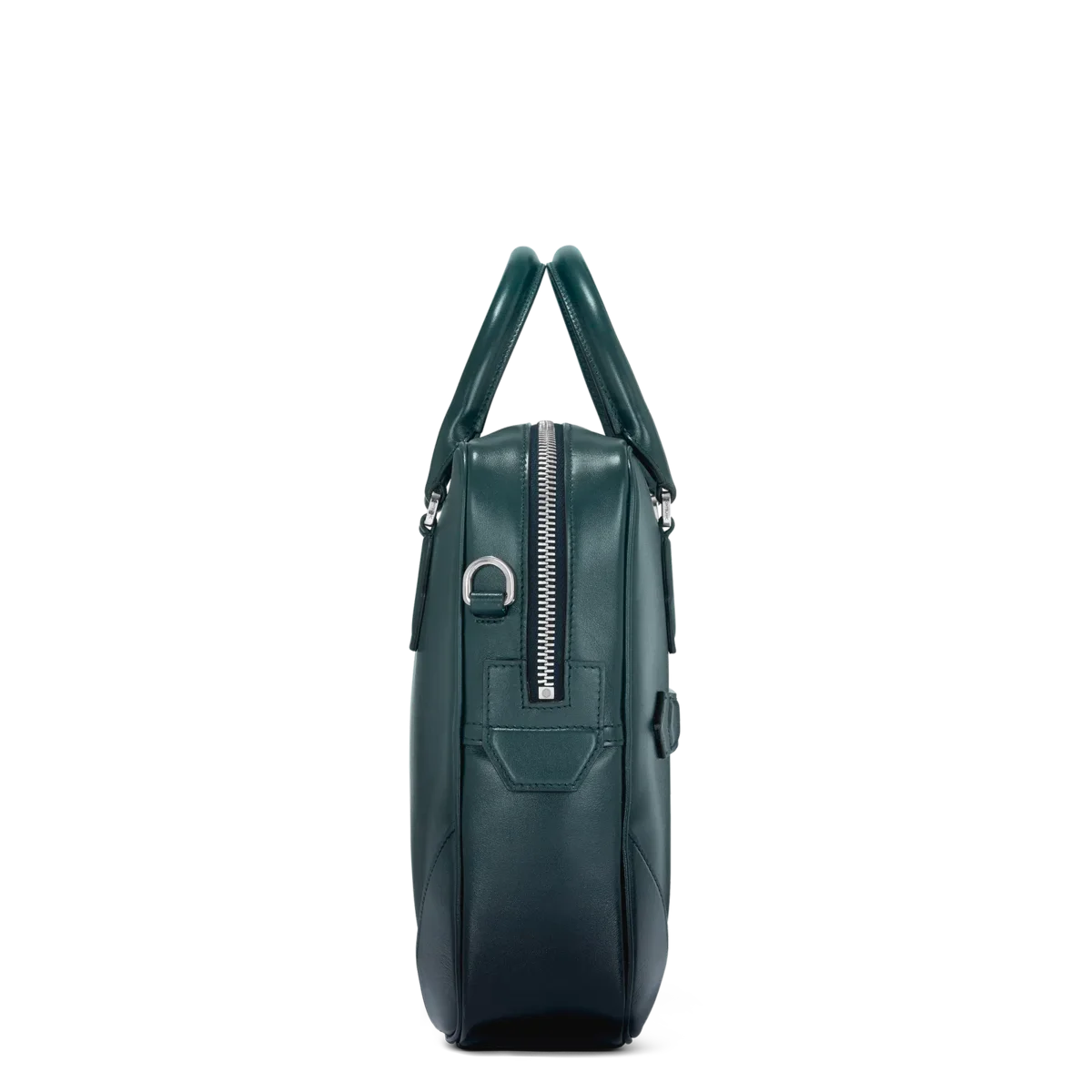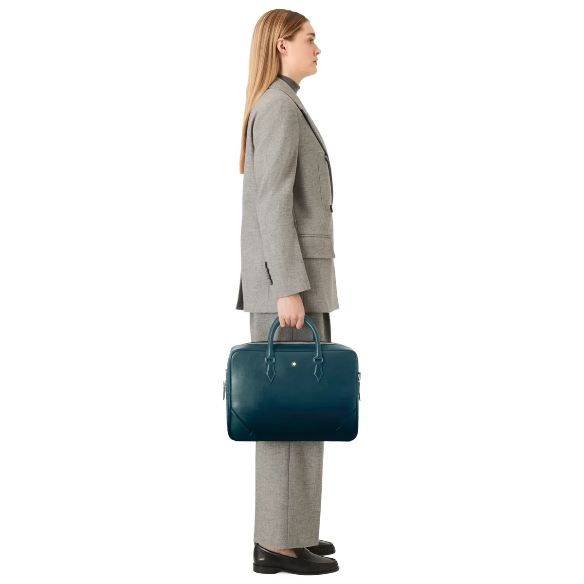 Experimente la esencia de la artesanía refinada con nuestro maletín Meisterstück, parte de nuestra exclusiva cápsula que celebra un siglo de artesanía Meisterstück. Confeccionado en piel verde británica con efecto sfumato, este elegante complemento refleja la esencia de Montblanc. Inspirados en la plumilla, las costuras, los tiradores de la cremallera y las asas rezuman elegancia. Con asas superiores de cuero, una correa para el hombro extraíble y un sistema satélite, ofrece múltiples opciones de transporte. En el interior encontrará un gran bolsillo abierto, un bolsillo con cremallera, dos bolsillos abiertos y dos presillas para instrumentos de escritura, lo que garantiza una organización perfecta. Mejore sus viajes de negocios con este sofisticado maletín para documentos, con capacidad para un ordenador portátil de hasta 13 pulgadas. N.º de identificación: MB198265