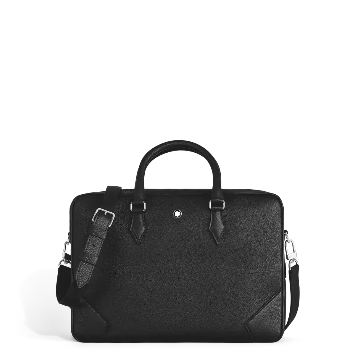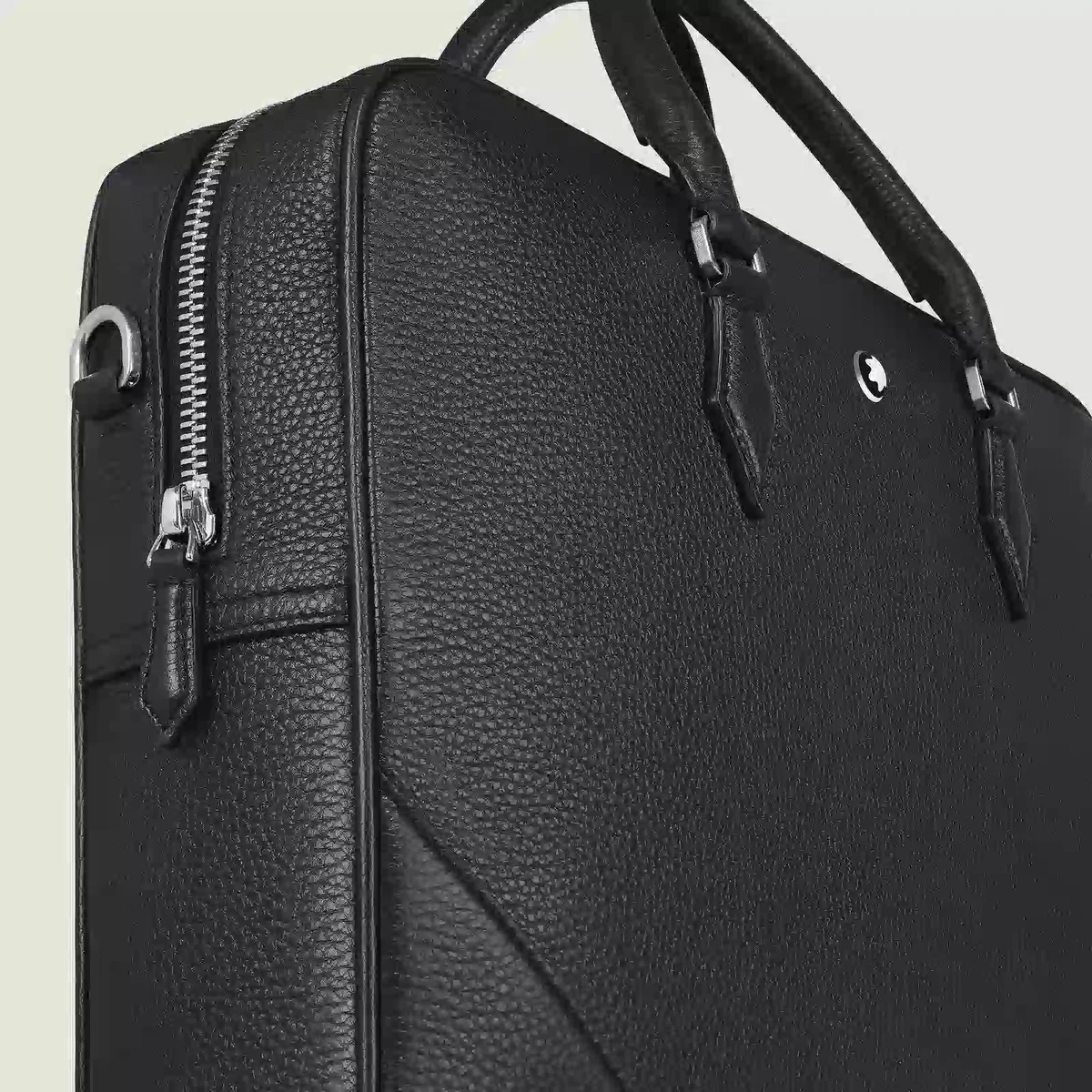 Este elegante maletín para documentos está confeccionado en suave piel negra granulada. Sus detalles en forma de plumilla, como las costuras, los tiradores de las cremalleras y las asas, se inspiran en la cultura de la escritura. Una correa extraíble y un sistema satélite permiten diferentes opciones de transporte, mientras que los bolsillos internos facilitan la organización durante los viajes de negocios. N.º de identificación: MB199437. Dimensiones: 375 mm * 80 mm * 270 mm. Peso físico: 1690 g. Aviso legal exportable: Los emblemas se centran manualmente. 270 mm Peso físico 1690 g Aviso legal exportable Los emblemas son centrados manualmente, uno por uno, por nuestros artesanos. El emblema está colocado en el centro, pero la presión manual con la máquina puede desplazarlo. Se trata de una característica que no compromete la estética del producto y que, según nuestra política, no puede ser motivo de reclamación.