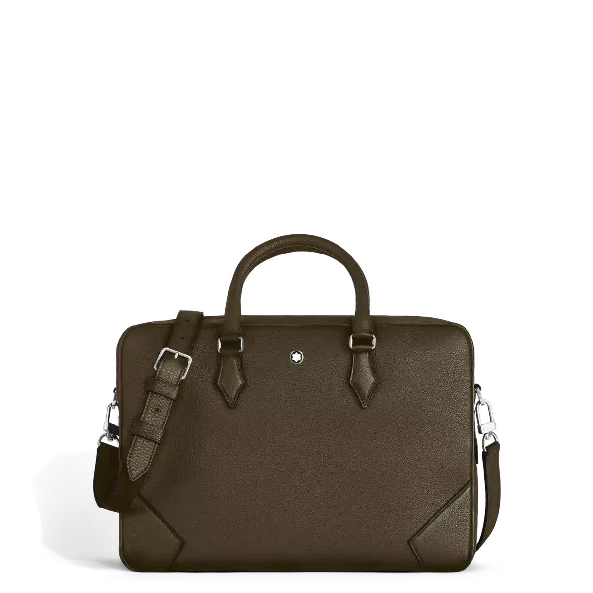 Este elegante maletín para documentos, elaborado en lujosa piel granulada en color caqui, rinde homenaje a la conexión de Montblanc con la cultura de la escritura a través de los detalles en forma de plumín en los tiradores de la cremallera y las asas. En el interior, ofrece una organización bien pensada con un gran bolsillo abierto, un bolsillo con cremallera, dos bolsillos abiertos adicionales y dos presillas para instrumentos de escritura. Una correa de piel extraíble y un sistema satélite proporcionan opciones de transporte versátiles, lo que lo convierte en el compañero ideal para los viajes de negocios. N.º de identificación MB220455 Dimensiones 375 mm * 80 mm * 270 mm