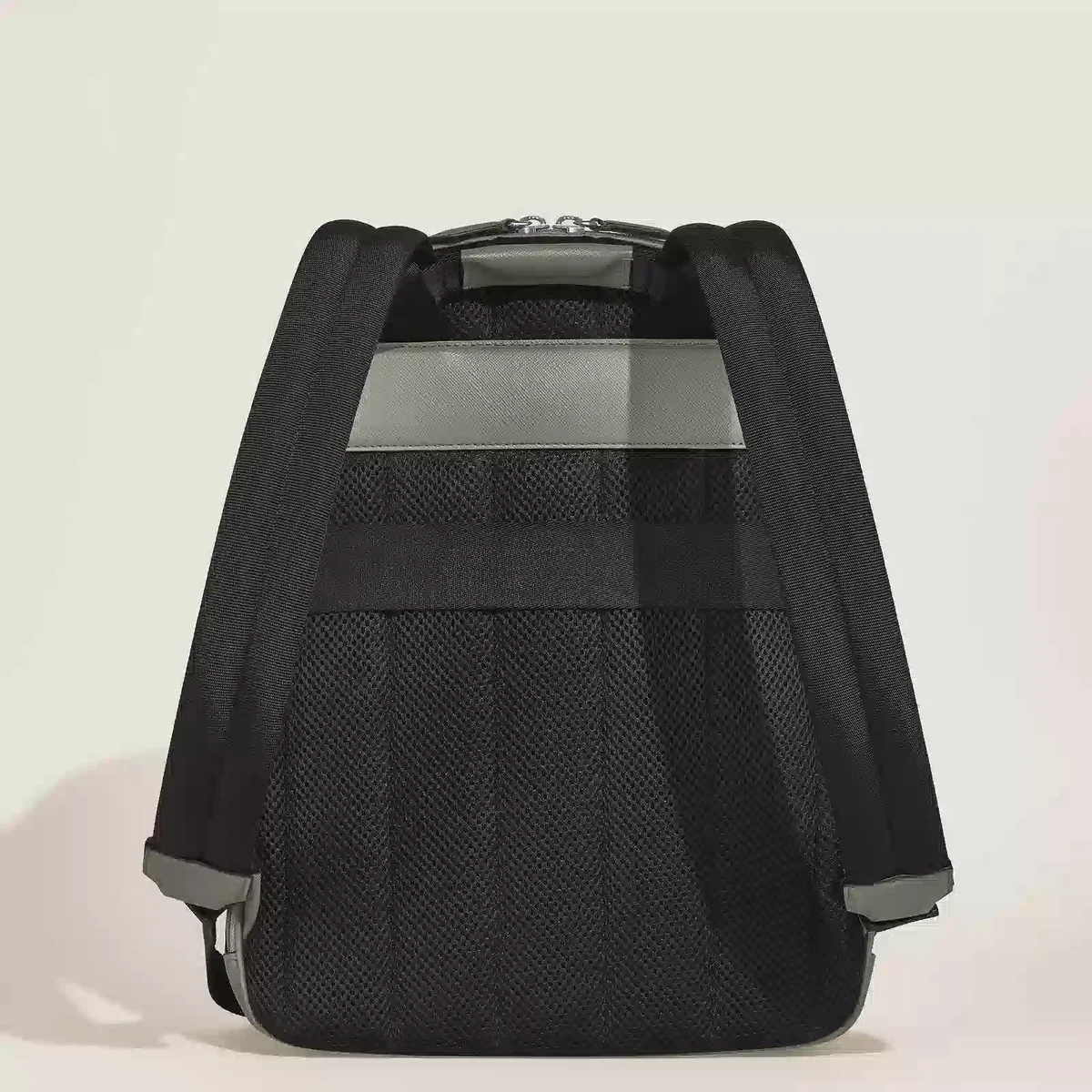 Esta mochila en gris medio, que combina funcionalidad con un estilo urbano refinado, es la compañera ideal para moverse por la ciudad. Su piel con estampado Saffiano le aporta un toque de sofisticación, mientras que sus tres compartimentos permiten una organización clara y ofrecen un amplio espacio para documentos, dispositivos y utensilios de escritura. Un bolsillo con cremallera adorna la parte delantera de la mochila y permite un acceso rápido a los objetos pequeños, mientras que una versión más grande del logotipo ilumina la bolsa. N.º de identificación: MB199360. Dimensiones: 330 mm * 130 mm * 400 mm