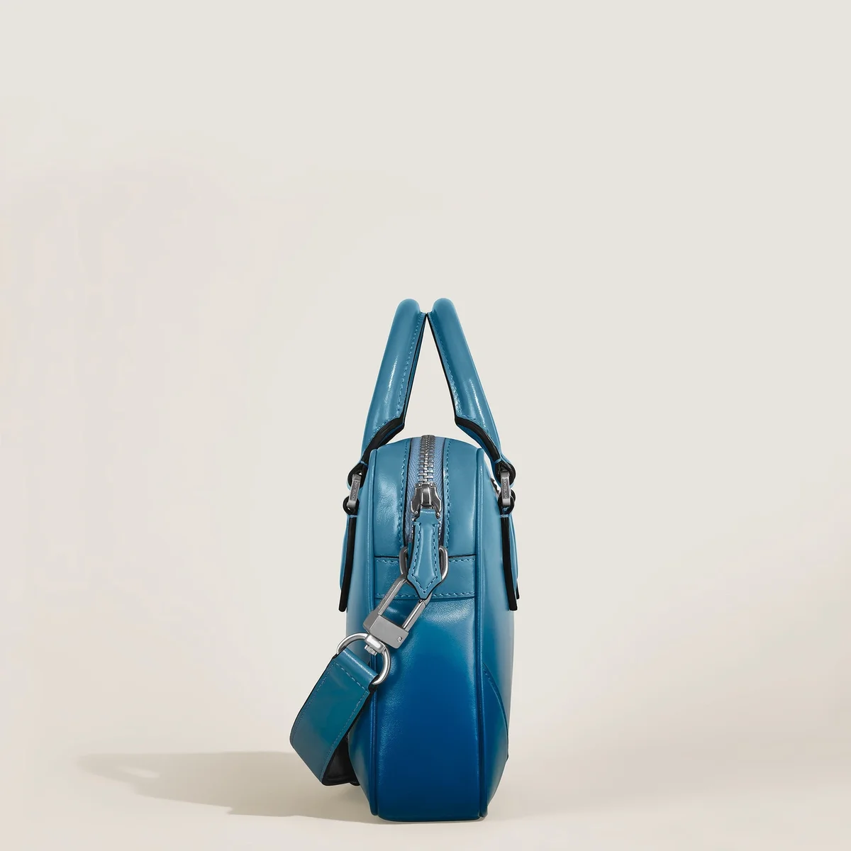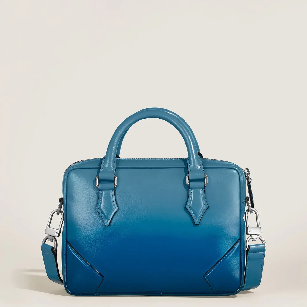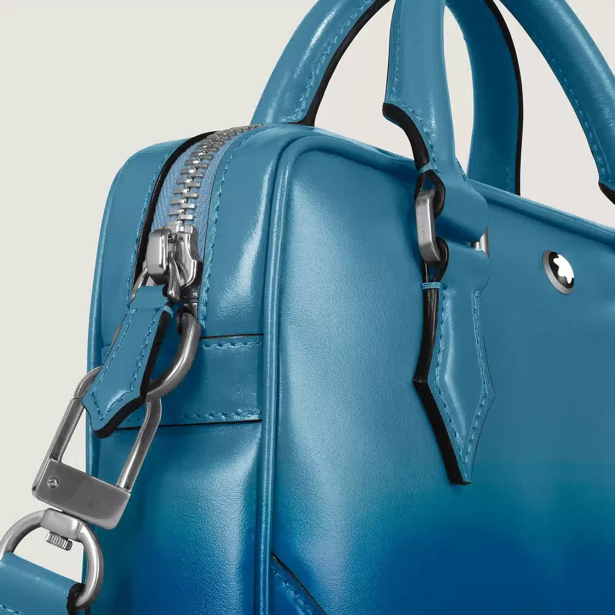 El mini maletín Meisterstück, elaborado a mano con suave piel en un precioso color azul ahumado, ofrece una experiencia de transporte excepcional. Realzado con un efecto sfumato aplicado a mano, cuenta con un compartimento principal para las necesidades diarias y un bolsillo con cremallera para organizar los artículos más pequeños. N.º de identificación: MB199274. Dimensiones: 230 mm * 50 mm * 170 mm. Peso físico: 600 g. Aviso legal exportable: Los emblemas se centran manualmente. 170 mm