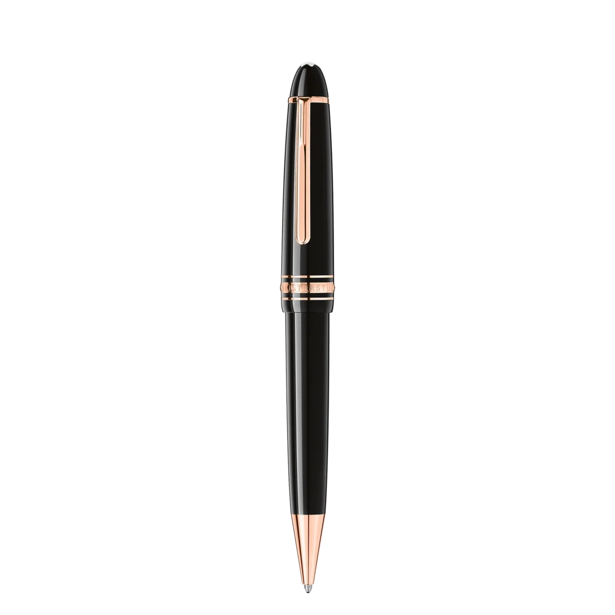 La colección Meisterstück LeGrand con baño de oro rosa de Montblanc es un diseño que hace historia. Lanzada en 1924, Meisterstück, que significa «obra maestra», se ha convertido en el símbolo de la escritura de lujo de alta calidad. El capuchón y el cuerpo están elaborados en resina preciosa negra con el emblemático emblema blanco de Montblanc incrustado en la parte superior del capuchón. N.º de identificación: MB132482. Peso físico: 151,87 g. Dimensiones: 147,9 mm x 15,5 mm.