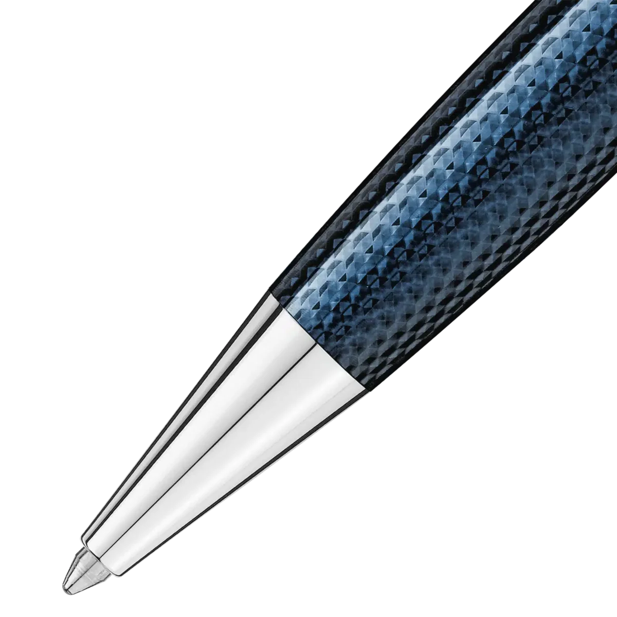 El Meisterstück Solitaire Doué Blue Hour Classique se presenta como un precioso bolígrafo Solitaire lacado en azul con accesorios recubiertos de platino. La hora mágica entre la luz del día y la noche, la hora azul, crea un suave contraste y un ambiente impresionante, que sirvió de inspiración para el diseño. Este bolígrafo azul utiliza un mecanismo giratorio y viene en su propia caja de regalo Montblanc. El capuchón y el clip, con número de serie individual, están recubiertos de platino para complementar a la perfección el llamativo aspecto del cuerpo. El patrón hexagonal del cuerpo azul refleja la refracción de las luces y el tráfico nocturno de las ciudades. N.º de identificación: MB132102 Peso físico: 130 g Dimensiones: 139 mm * 12,5 mm