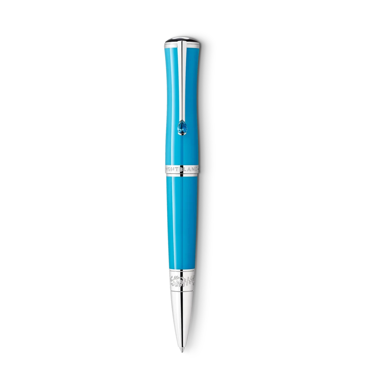 El bolígrafo Montblanc Maria Callas Edición Especial color turquesa está dedicado a una de las sopranos más carismáticas del siglo XX y apreciada icono de estilo. Con su talento, pasión y personalidad, encarnó un cierto ideal de diva de la ópera. En algunos de los teatros de ópera más importantes del mundo, desde La Scala de Milán hasta la Ópera de París y la Ópera Metropolitana de Nueva York, se la conocía como «La Divina». La edición destaca uno de sus colores favoritos, el turquesa, en la preciosa resina del capuchón y el cuerpo, al tiempo que refleja la elegante belleza de Maria Callas en su silueta esbelta y elegante. En memoria de su patria griega rodeada por el mar, el clip recubierto de platino está decorado con una piedra sintética cuyo color recuerda el radiante azul turquesa del mar Egeo. Un detalle del vestuario de uno de sus papeles más reconocibles del bel canto, «Norma» de Bellini, se refleja en un patrón de hojas de laurel que rodean el cono recubierto de platino de la edición, junto con la firma en relieve de la célebre soprano.N.º de identificación: MB129566 Peso físico: 39,6 g Dimensiones: 128,6 mm * 14,7 mm