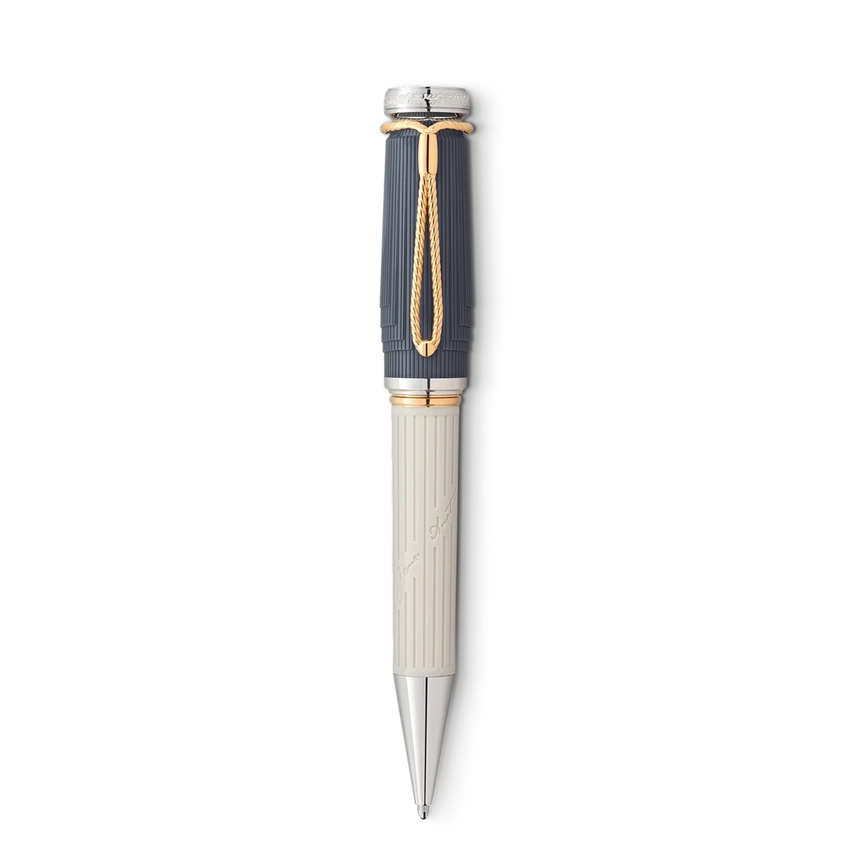 Pocos autores en la historia de la literatura han tenido la capacidad de crear diálogos y dar vida a los personajes con tanta elegancia, ironía y astucia como la autora británica Jane Austen. Montblanc ha creado la Writers Edition Homage to Jane Austen para rendir homenaje a una de las autoras más famosas de la literatura inglesa.Esta edición da vida a la época de la Regencia, cuando las nobles fincas rurales eran el escenario de grandes fiestas celebradas con el fin de cultivar las relaciones sociales y forjar alianzas matrimoniales. Las estrías de una columna clásica adornan el elegante cuerpo de resina gris arenisca, junto con la firma de Jane Austen. El contraste del capuchón gris azulado hace referencia al tipo de abrigo de doble cuello de la Regencia que solían llevar caballeros como el señor Darcy en Orgullo y prejuicio. Los anillos recubiertos de oro del cuerpo y los accesorios chapados en platino añaden los toques finales al diseño. El grabado de los números romanos XLIII en el anillo del capuchón hace referencia al capítulo de la novela en el que Elizabeth Bennet ve por primera vez la finca del señor Darcy.La portada de su novela Sentido y sensibilidad, publicada en 1811, simplemente declaraba que la obra había sido escrita «por una dama». Esta declaración de autoría adorna la parte superior del capuchón de la Writers Edition Homage to Jane Austen Limited Edition, junto con el emblema de Montblanc. La silueta del instrumento de escritura se asemeja a un sello de cera. El clip es tan inusual como el capuchón. Con forma de cordón trenzado con cierre de cordón, se asemeja al de un «retículo», un tipo de bolso que utilizaban las mujeres alrededor de 1800 para llevar sus polvos, espejo y el indispensable pañuelo de bolsillo.N.º de identificación: MB130674 Peso físico: 51,01 g Dimensiones: 133,5 mm * 16,7 mm