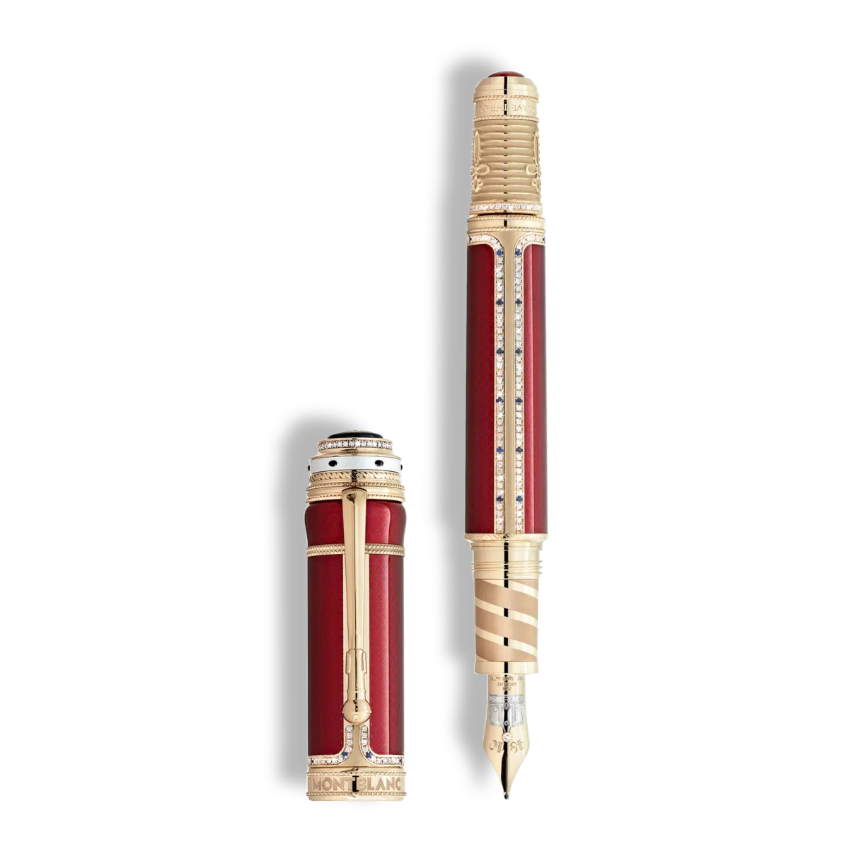En la rica historia de la música rock, pocos nombres han brillado de forma tan constante como el de Queen. Con una carrera que abarca más de cinco décadas, la banda es una de las más exitosas de todos los tiempos. Durante este periodo, Queen llegó a encarnar el poder de la creatividad musical. Crearon su propio universo musical, compuesto por una combinación de hard rock, glam rock, pop, funk y ópera, rompiendo las barreras entre los géneros. Montblanc dedica su Great Characters Homage to Queen Limited Edition 8 a estos iconos de la música rock.En reconocimiento a las raíces británicas de la banda y a su imagen como reyes del rock, el plumín de oro macizo Au 750, elaborado a mano, presenta una corona en relieve y un diamante de talla brillante. Una banda real, accesorio indispensable en muchas ocasiones ceremoniales, inspiró el patrón que se enrolla alrededor de la parte delantera.El logotipo de la banda integra los signos del zodiaco de los miembros originales: leones para Roger Taylor y John Deacon, un cangrejo para Brian May y dos hadas para Freddie Mercury, que nació bajo el signo de Virgo. En el centro hay una letra «Q» estilizada con una corona; sobre ella se eleva un fénix, símbolo del renacimiento y la renovación. La legendaria marca comercial aparece como un elaborado relieve en oro macizo Au 750 finamente grabado en la tapa, que contrasta maravillosamente con la laca roja.El diseño de la Edición Limitada 8 rinde homenaje a los reyes del rock y está especialmente inspirado en un legendario traje de escenario que llevaba el líder de la banda, Freddie Mercury. En la gira Magic Tour, el cantante llevaba una capa de color rojo intenso con ribetes de armiño falso, inspirada en las túnicas de coronación del emperador Napoleón, y una corona enjoyada. Recreando este legendario traje de escenario, el capuchón y el cuerpo de oro amarillo macizo Au 750 presentan un delicado patrón guilloché, cubierto con laca carmín translúcida. El majestuoso ribete de armiño ha sido interpretado por los maestros artesanos de Montblanc como bandas de diamantes talla brillante y zafiros azul oscuro exquisitamente engastados. Discretos ecos de símbolos de flor de lis decoran no solo el cuerpo, sino que también embellecen el cono de oro macizo Au 750, integrado artísticamente en un patrón de líneas que se asemeja a las cuerdas de una guitarra. Como homenaje a este instrumento indispensable, la forma del cono recuerda a los característicos botones de control de tono de una guitarra eléctrica y un granate rojo adorna el extremo del cono.Un anillo de preciosa laca de nácar con detalles en laca negra intensa recrea el ribete de armiño de una corona, sobre la cual la cúpula presenta una banda de diamantes, un trono digno para el emblema de Montblanc compuesto por diamantes talla brillante engastados en oro macizo de 750 milésimas. La filigrana del emblema de Montblanc recuerda las cruces que irradian la bandera británica, que Mercury lucía como una capa en sus conciertos en directo con tanto orgullo como su famosa túnica de coronación. En memoria de las electrizantes actuaciones del grupo, el clip recubierto de oro está diseñado para parecerse a un soporte de micrófono, un sencillo accesorio que se utilizaba con un efecto espectacular.N.º de identificación: MB132026 Peso físico: 135 g Dimensiones: 146 mm * 18 mm * 18 mm