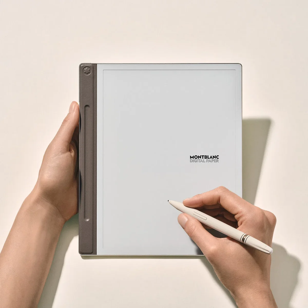 Montblanc Digital Paper: un nuevo capítulo en la tradición de innovación reflexiva de la Maison. Diseñado para aquellos que valoran la tranquila claridad de la escritura a mano, Montblanc Digital Paper ofrece un espacio digital enfocado para escribir, dibujar o anotar con facilidad. Ya sea para empezar desde una página en blanco, marcar documentos o buscar y compartir notas, la experiencia es fluida y refinada. Tres puntas intercambiables permiten que cada trazo se sienta perfecto: distintivo, personal y satisfactorio. Arraigado en el legado de artesanía de Montblanc, el papel digital Montblanc aporta una intención familiar en una forma moderna. Un compañero para aquellos que escriben no solo para comunicarse, sino para dejar una impresión. N.º de identificación: MB135011