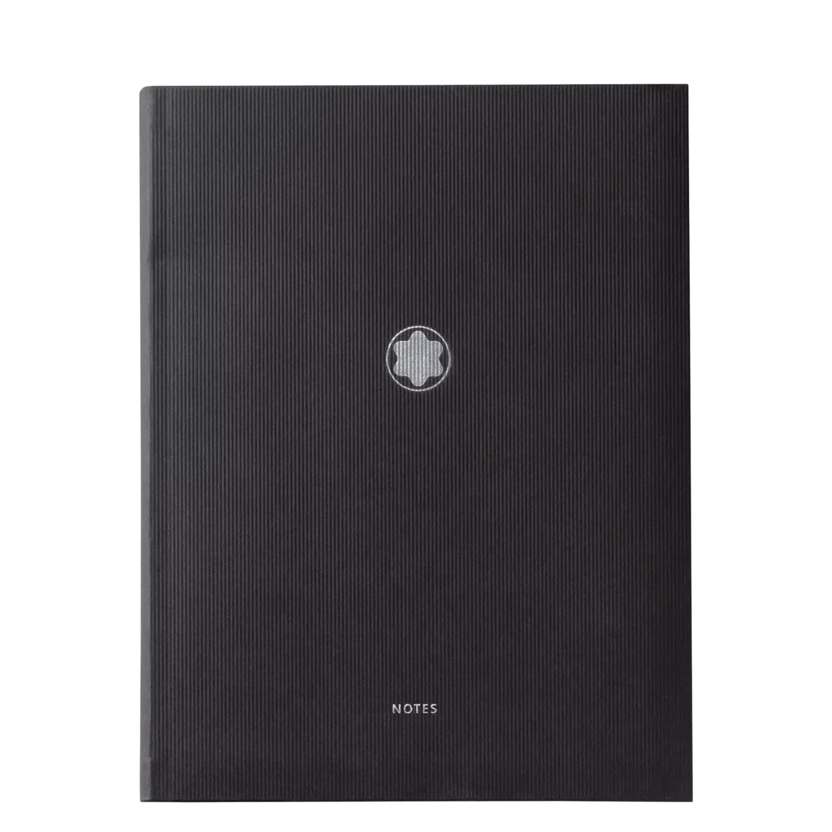 Cuaderno mediano con tapa blanda negra y emblema Montblanc plateado centrado. El interior consta de 248 páginas rayadas de papel blanco de primera calidad, perfectamente adaptadas para escribir con tinta y con el emblema Montblanc en exclusiva.